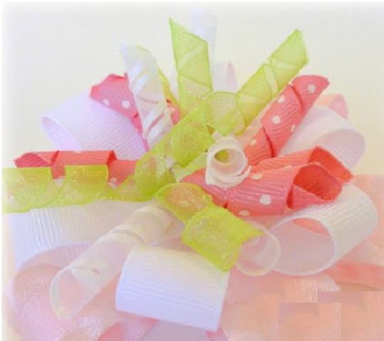 Your Korker bows should look something like the image shown above. Cut your Korker bows to a smaller length or in a length that suits the size of your ribbon flowers.