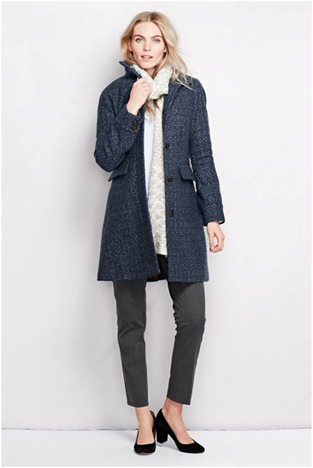 These coats are normally long and lose as compared to other fitted types. They have little burden around waist so they allow you to walk and sit freely without tightening the grip around you. They have an overall slim outlook so despite being loose, they make you look fit. These coats mimic the men’s style of coat so they are a bold fashion statement for women. It is better to choose lighter shades like fawn or peach for chesterfield coats to keep the overall attire feminine. However, if you wish to take on the bold side, reds and blues are equally good if worn with confidence in your style.
