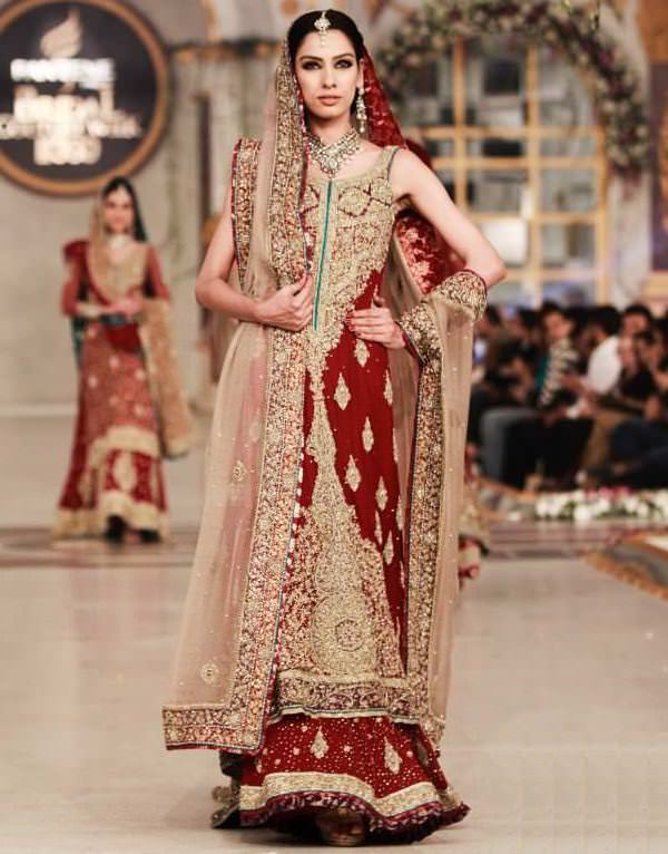 The wedding dress has to look regal and clearly above the fancy dresses worn regularly. Zari, dabka and zardoriare the musts of the wedding dress. They add all the glitz and glamour to that red lehnga. Pearls and stones are also an exciting touch which not only make the wedding dress look more fancy but clearly puts it above par from other formal and fancy clothes. Applique work on the borders is the addition made to do two things, keep the dress in shape while the bride sits or walks and to add the color contrast to the dress itself.