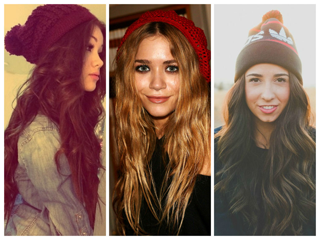 Beanies often make hair wavy in the covered area. So to disguise the beanie effect, add loose curls or waves to your hair outside the beanie as well. When you will take it off, the waves from the covered area will resemble the waves you intentionally added to rest of the hair and the hairstyle will look much better. You can also braid your hair or sweep them on one side to avoid flat hair until beanie rim and fluffy downwards