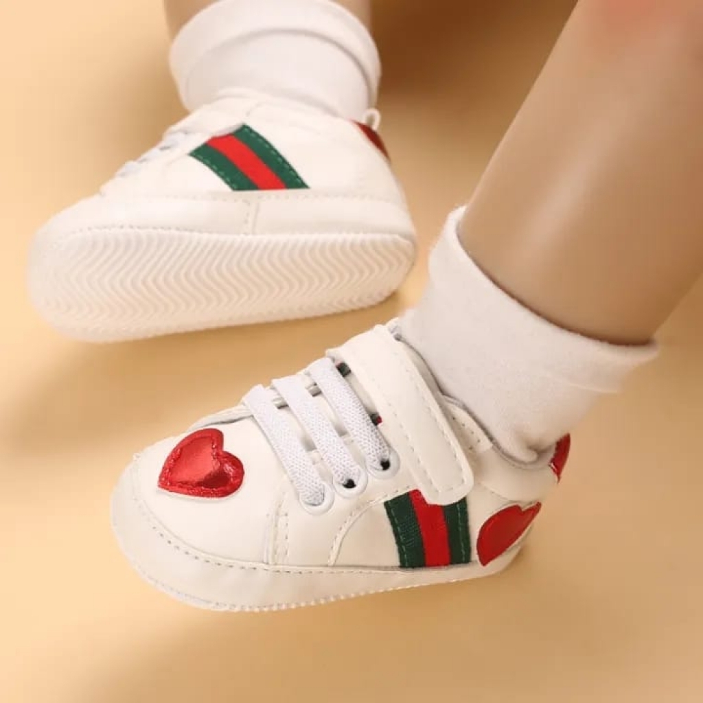 Style Collection: White Red Heart Baby Soft Walker Sneaker Shoes