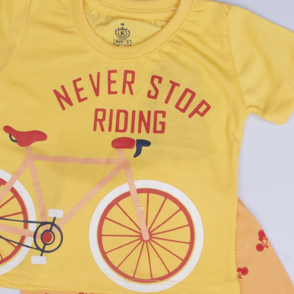 Boys Half Sleeves 2 Piece Suit Color Yellow & Orange