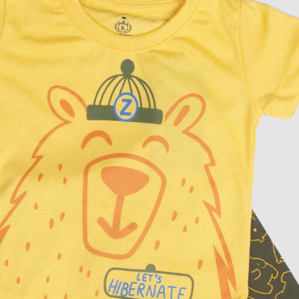 Style Collection: Boys Half Sleeves Let's Hibernate 2 Piece Suit Color Yellow