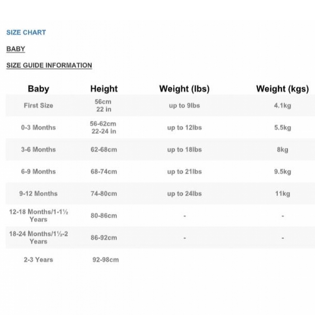 Size Chart SKU:ALLT007-2Y