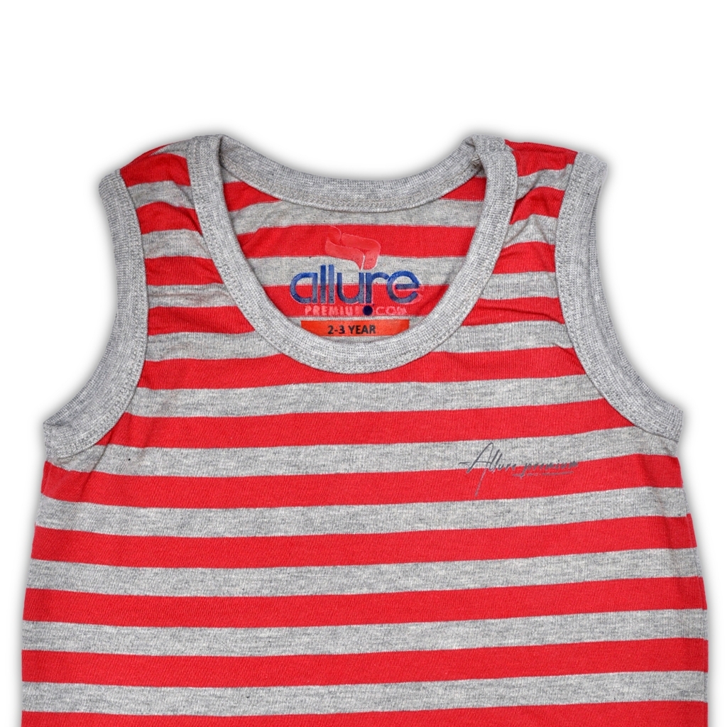 • Material: Soft, breathable cotton or cotton blend • Design: Sleeves Less, round neck, and pullover style • Pattern: Striped design in various colors • Fit: Comfortable and stretchable for easy movement • Usage: Ideal for casual wear, outings, or layering • Skin friendly and easy to wear. Let your child be at ease all day • Interior labels printed so as not to irritate the skin. • Care: Machine washable and durable for repeated use • Perfect for the summer season • Trusted Allurepremium’s quality, everyday low prices, and hassle-free packaging • Package include: Baby Sleeve less T-Shirt