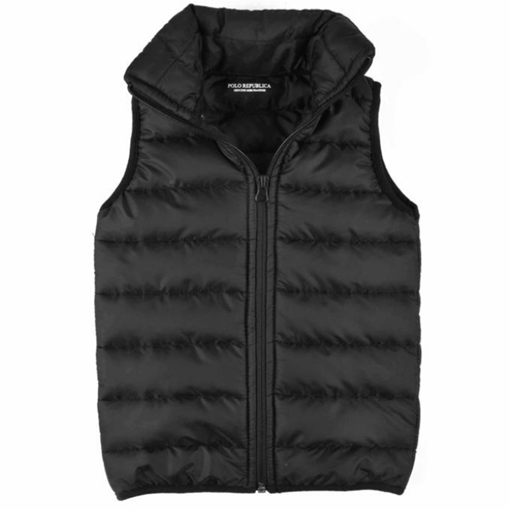 Stand collar Full zip closure Water resistant fabric Faux down 150g insulation Shell: 100% Polyester; Lining: 100% Nylon; Insulation: 100% Polyester Dry Clean Only Size chart is provided in the photos