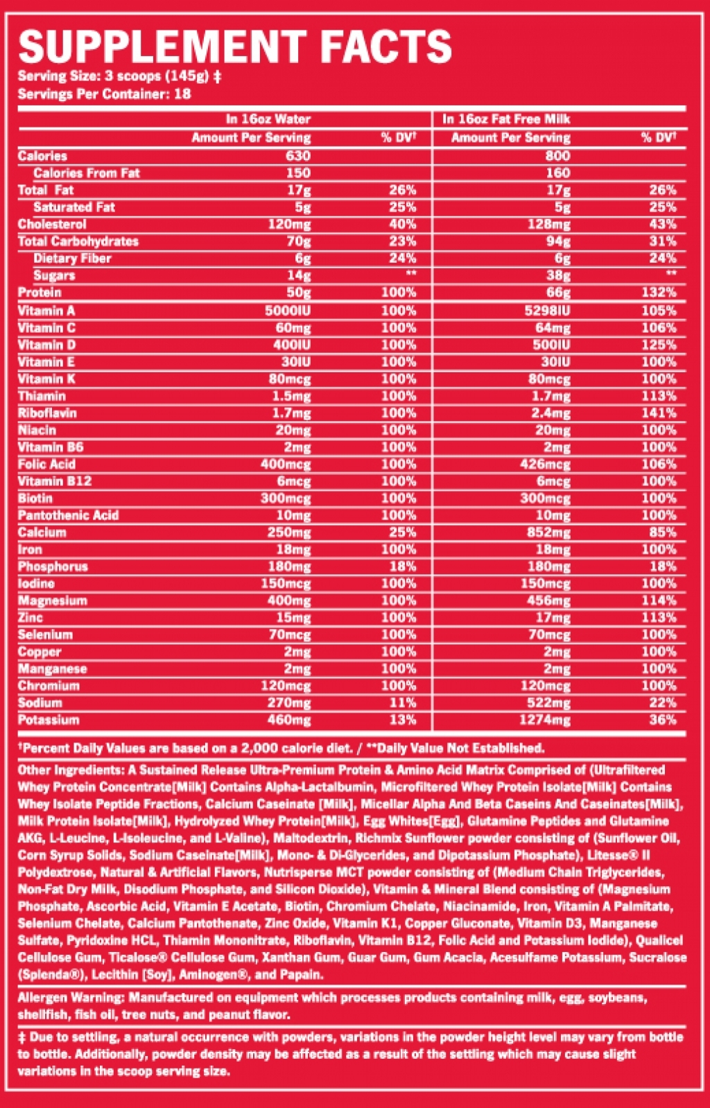 TRUE-MASS is an ultra-premium lean mass gainer, designed to promote muscle growth.* It features BSN’s signature ultra-premium protein formula to feed an athlete’s muscles with essential protein building blocks.* The unique carbohydrate blend provides the caloric support necessitated by extreme physical exertion, helping the body prepare for and support recovery from intense training. Healthy fats supply quick-burning fuel to satisfy the serious athlete’s energy demands. And all these high-quality ingredients come delivered with BSN’s exclusive flavor technology, producing one of the most mouth-watering mass-gaining shakes on the market. TRUE-MASS’ balanced composition makes it a nutritious source of caloric support and useful as a healthy meal replacement as part of a balanced diet plan. Its ultra-premium blend of protein, carbohydrates and healthy fats promotes increases in lean muscle mass. And with a taste that can’t be matched, when it comes to mass gainers, TRUE-MASS is in a class by itself.