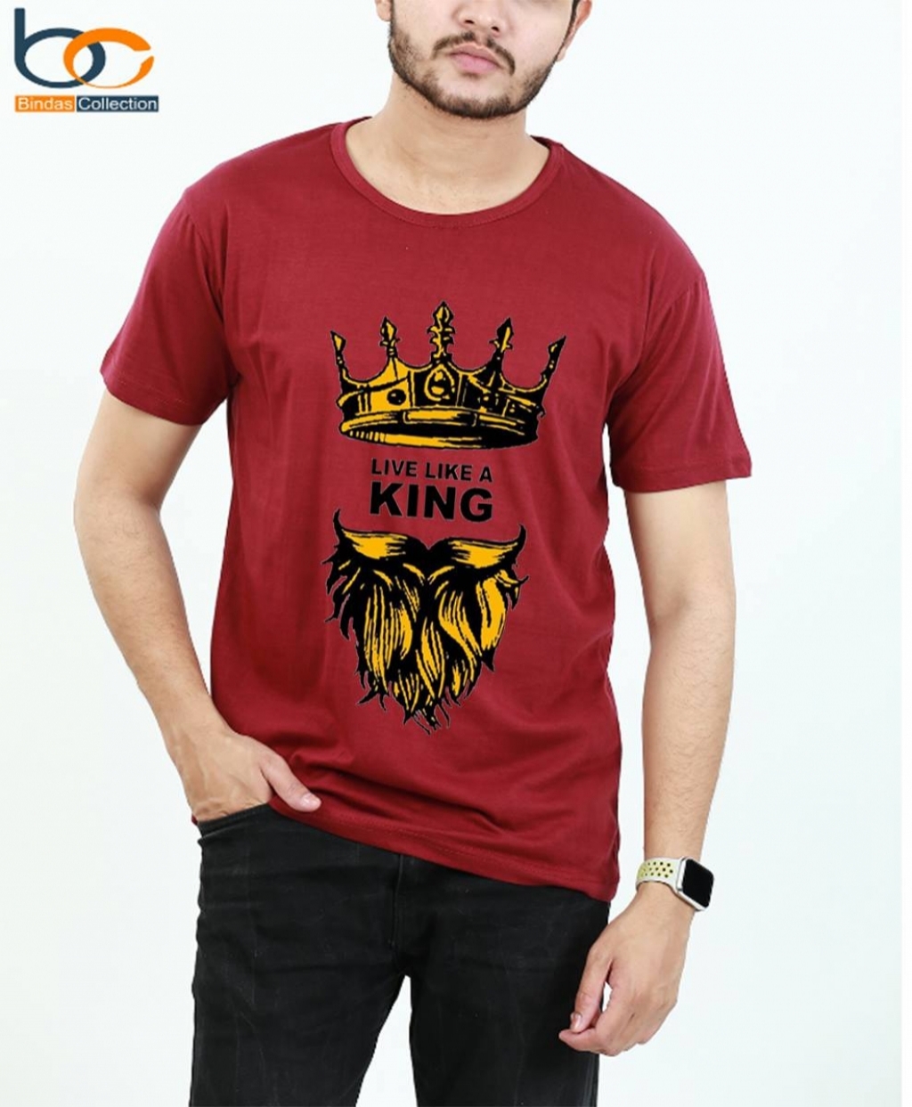 Bindas Collection Maroon Half Sleeves Printed Tshirt For Men Fabric Cotton Jersey Export Quality Fabric & Sizes Trendy Printed t-shirt Best for casual use Best value of money