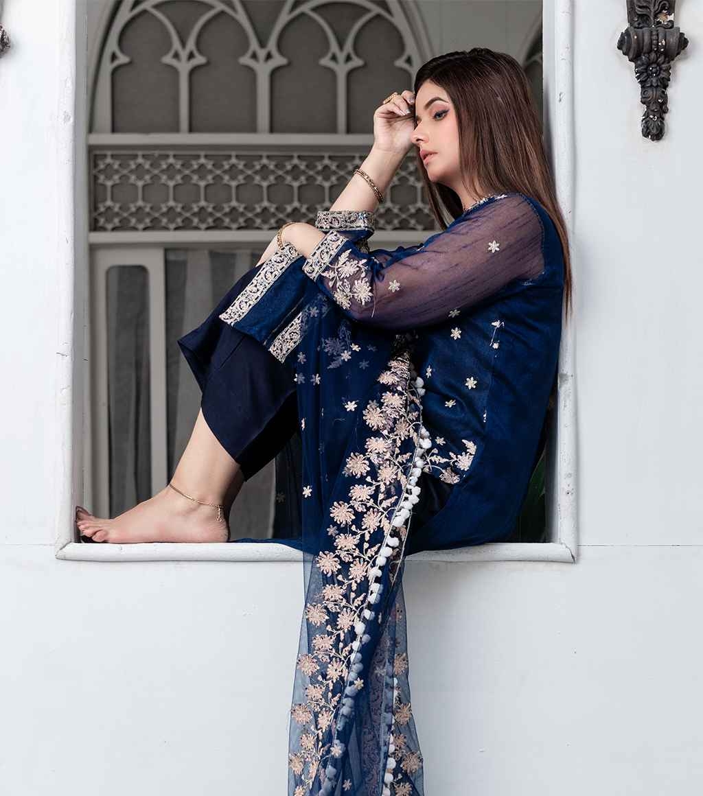 Belle Blue Khaddar Embroidered...