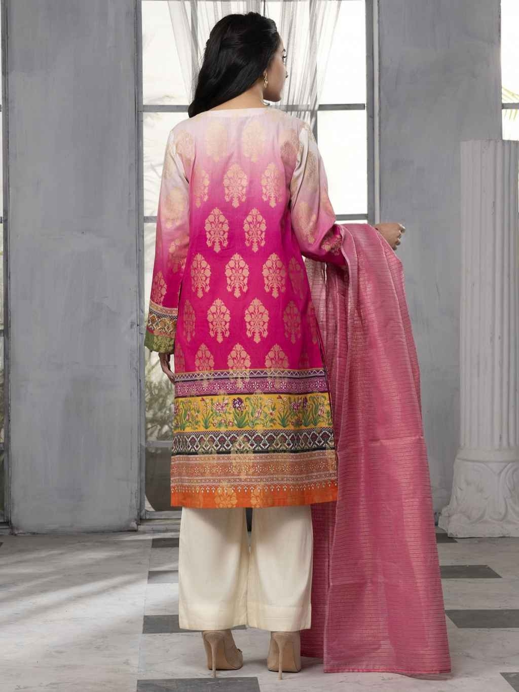 2-PC PINK LAWN SUIT UNSTITCHED...