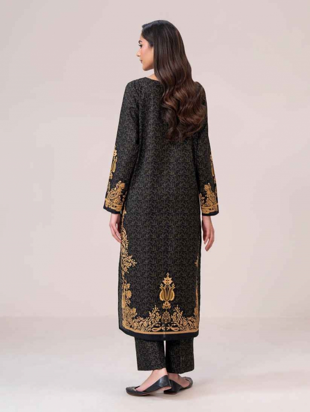 Shirt Printed- 1.81m Fabric: Khaddar Bottom Printed- 1.8m Fabric: Khaddar Color: Black
