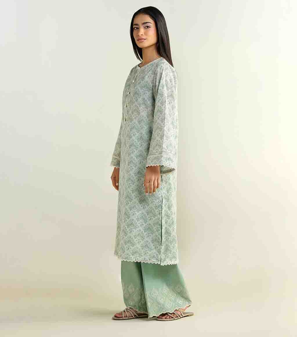 Step into grace and style this Independence Day with our 2 Piece Printed & Embroidered Lawn Suit, part of the Azadi Sale 2025 Collection. Designed in a soft green hue, the set features a printed lawn shirt paired with a beautifully embroidered cambric shalwar — the perfect balance of comfort and festive charm.