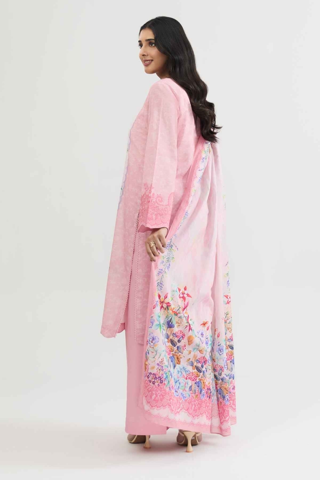 Eid collection 2026 sale 3-Piece Unstitched Shirt Printed Wider Width Lawn Shirt 1.8 M Fabric: Lawn Color: Pink Dupatta Printed Lawn Dupatta 2.5 M Fabric: Lawn Color: Pink Trouser Dyed Cambric Trouser 1.7 M Fabric: Cambric Color: Pink