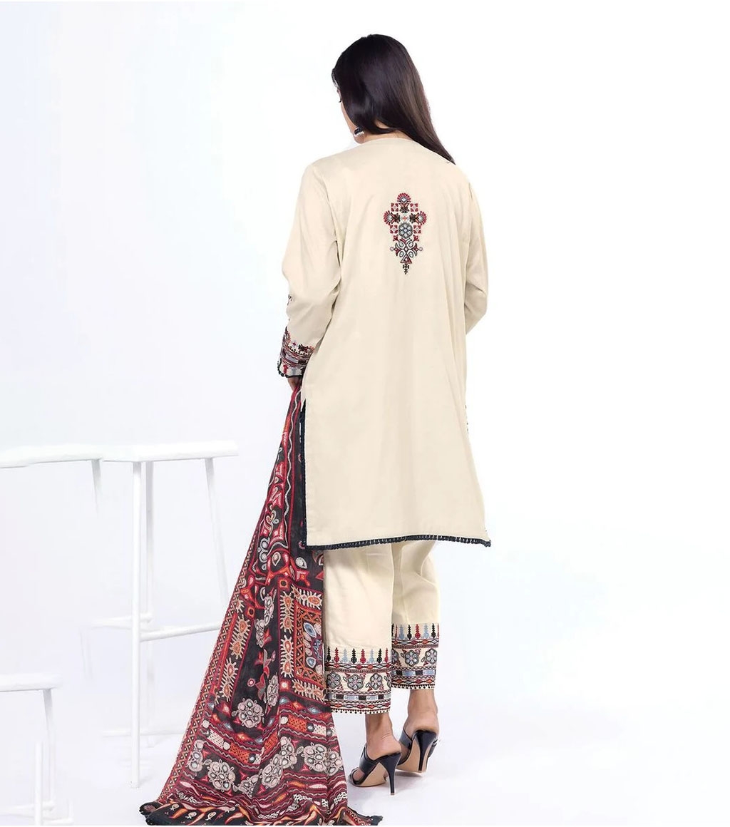 Top Fabric: Dyed Embroidered Dobby | 3.25m Bottom Fabric: Dyed Embroidered Dobby | 2.5m Dupatta Fabric: Digital Printed Cotton Square | 2.5m Material: Dobb