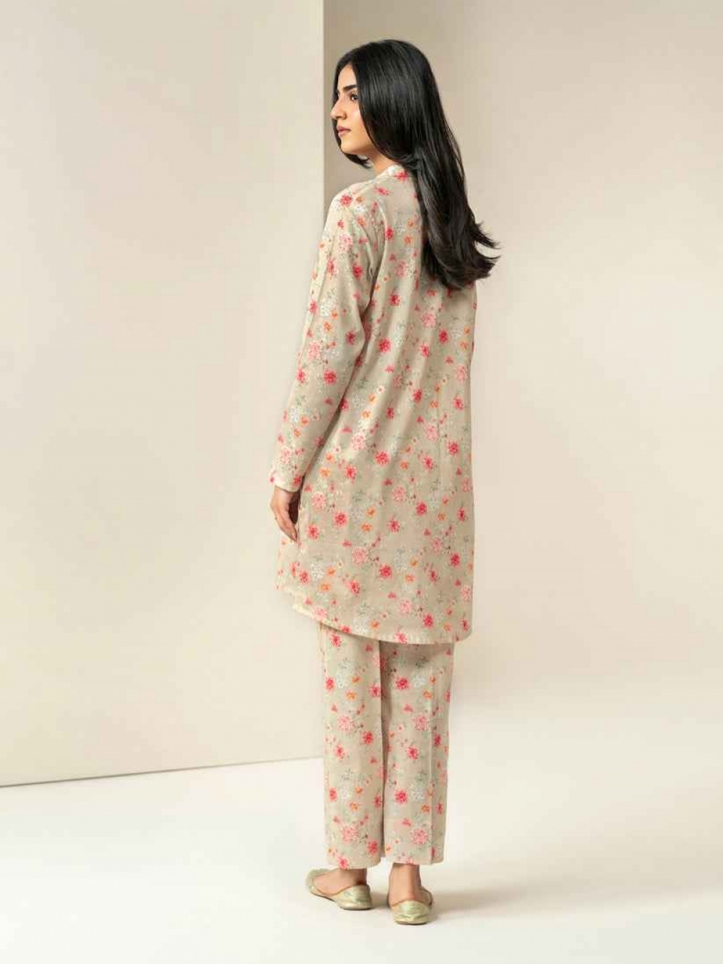 Shirt Printed- 1.85m Fabric: Khaddar Color: Beige