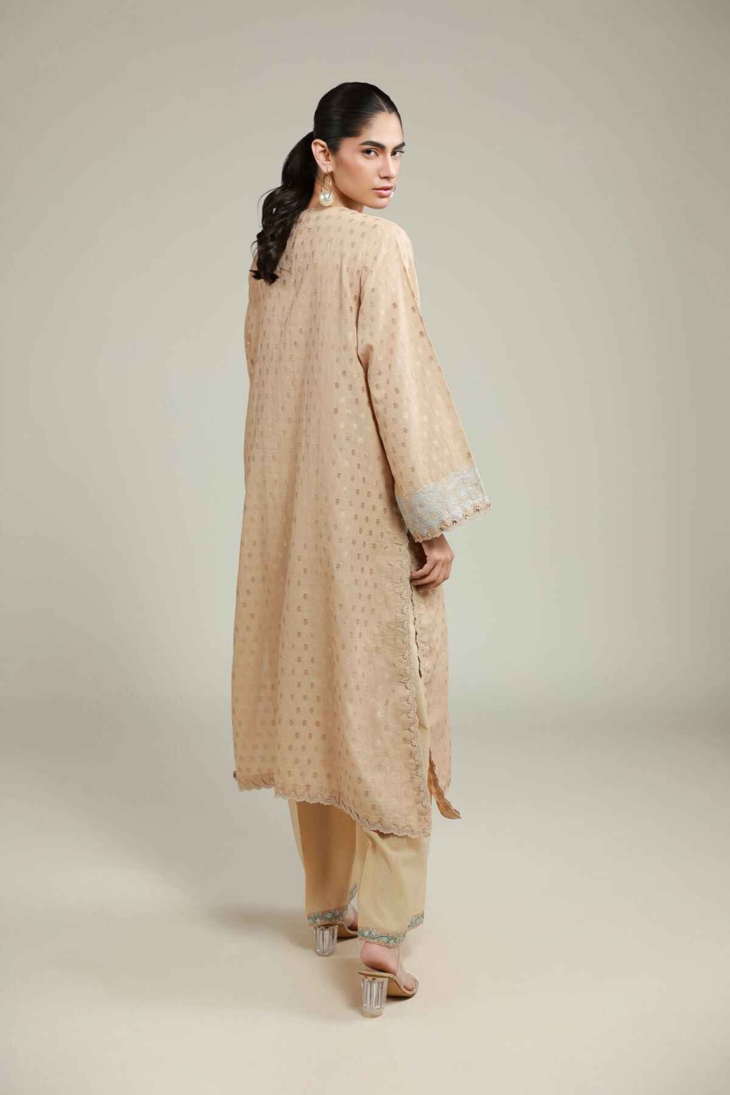 Fabrics 2 Piece | Top and Bottom Top Fabric: Dyed Embroidered | Jacquard | 3.25m Bottom Fabric: Dyed | Cambric | 2.5m Material: Jacquard Add Ons: Embroidered Organza Border | 3.66m Embroidered Organza Border | 1m