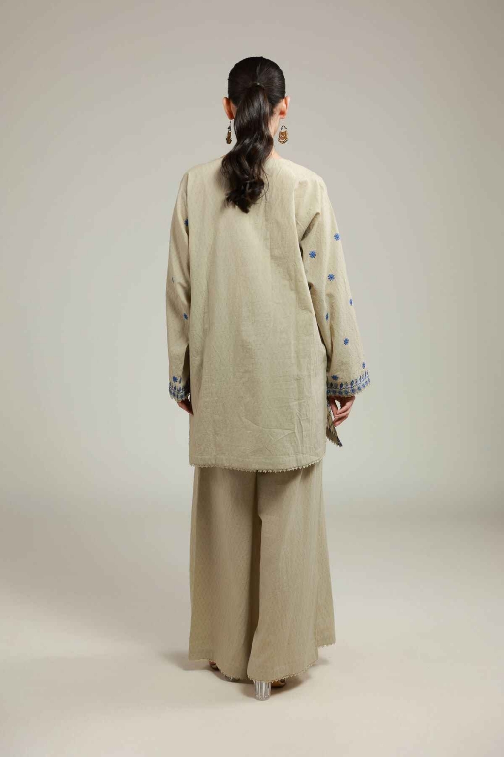 Beige with blue embroidery unstitched 2 piece Embroidered Cotton Dobby suit by khaadi
