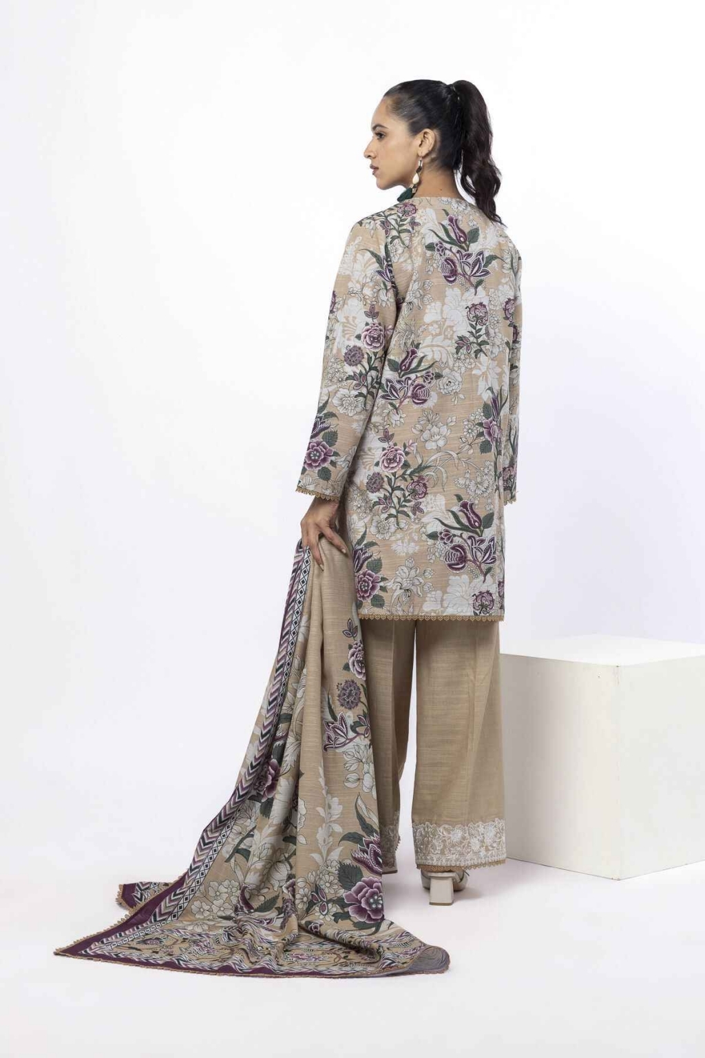 Fabrics 3 Piece Top Fabric: Printed Light Khaddar | 3m Bottom Fabric: Dyed Embroidered Khaddar | 2.5m Dupatta Fabric: Printed Light Khaddar | 2.5m Material: Light Khaddar