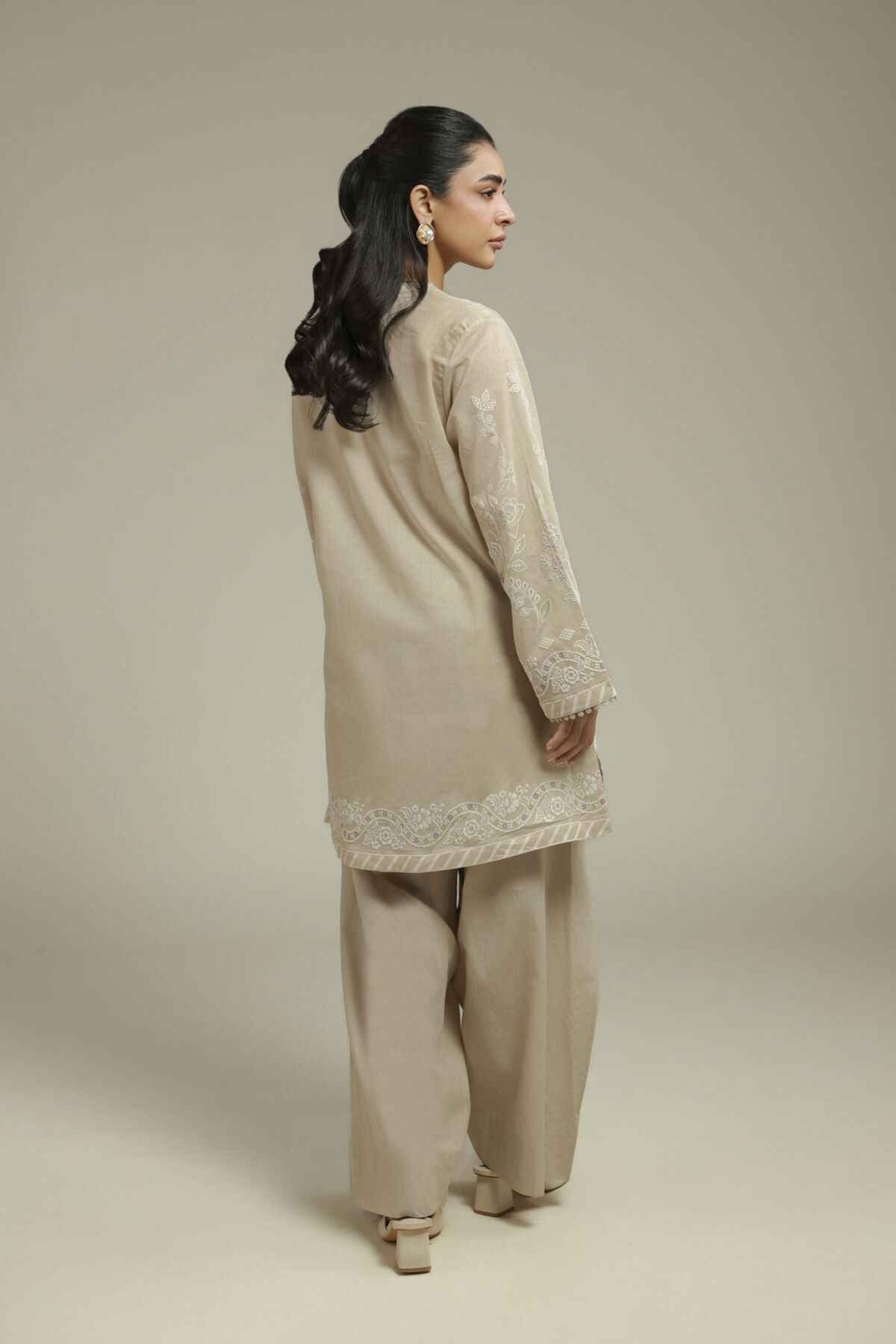 Beige Suit with Sea Green Embr...