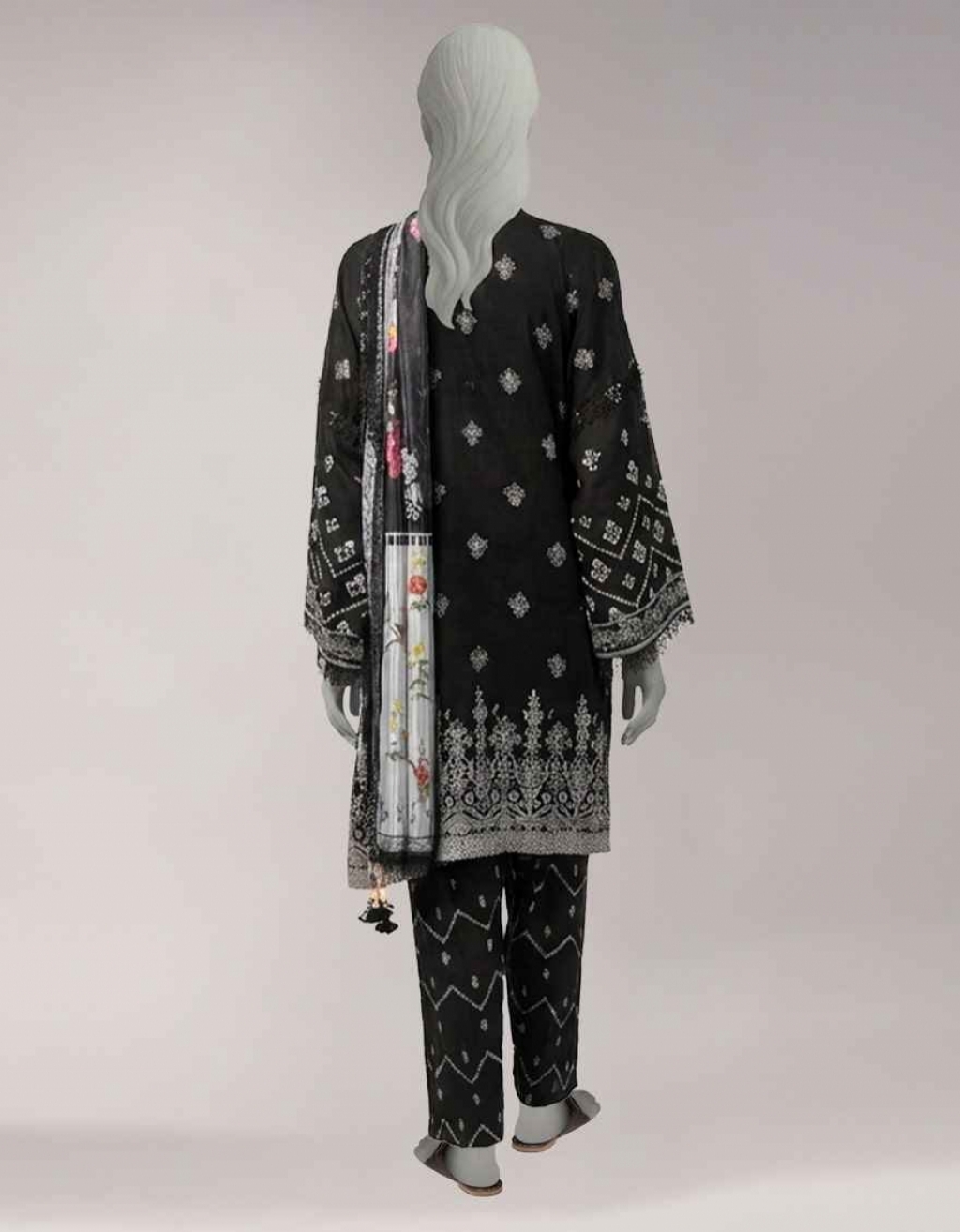 ZARIYA | Basic 3 Piece Paste Printed Lawn Shirt: 3 Meters Digital Printed Silk Dupatta: 2.5 Meters Paste Printed Lawn Trouser: 2.5 Meters