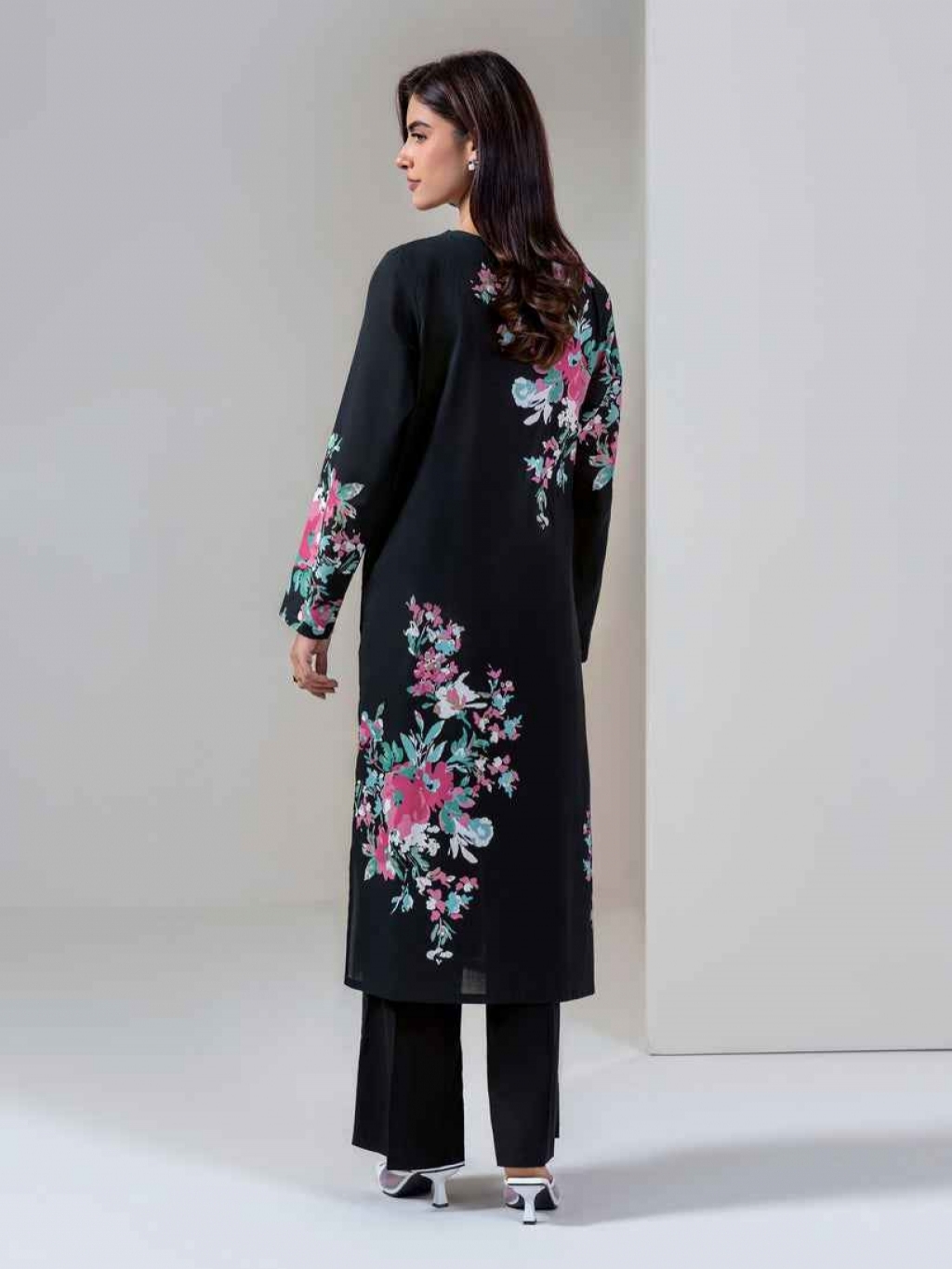 Shirt Printed- 1.85m Fabric: Khaddar-Paste Color: Black