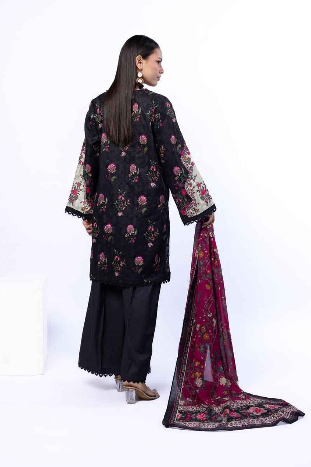 Black Floral Unstiched 3 Piece...