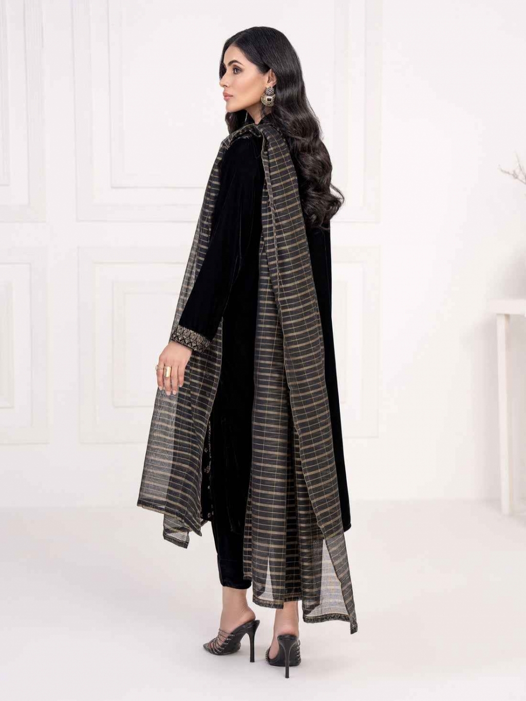 Shirt Dyed shirt with embroidery 1.83 M Fabric: Velvet Shawl Dyed dupatta 2.5 M Fabric: Staple Trouser Dyed trouser 1.8 M Fabric: Velvet