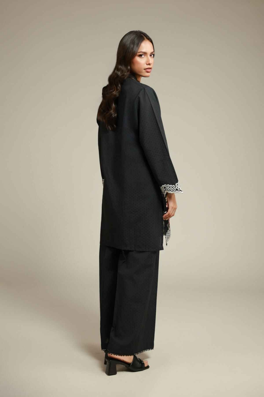Beige with Black Embroidery un...