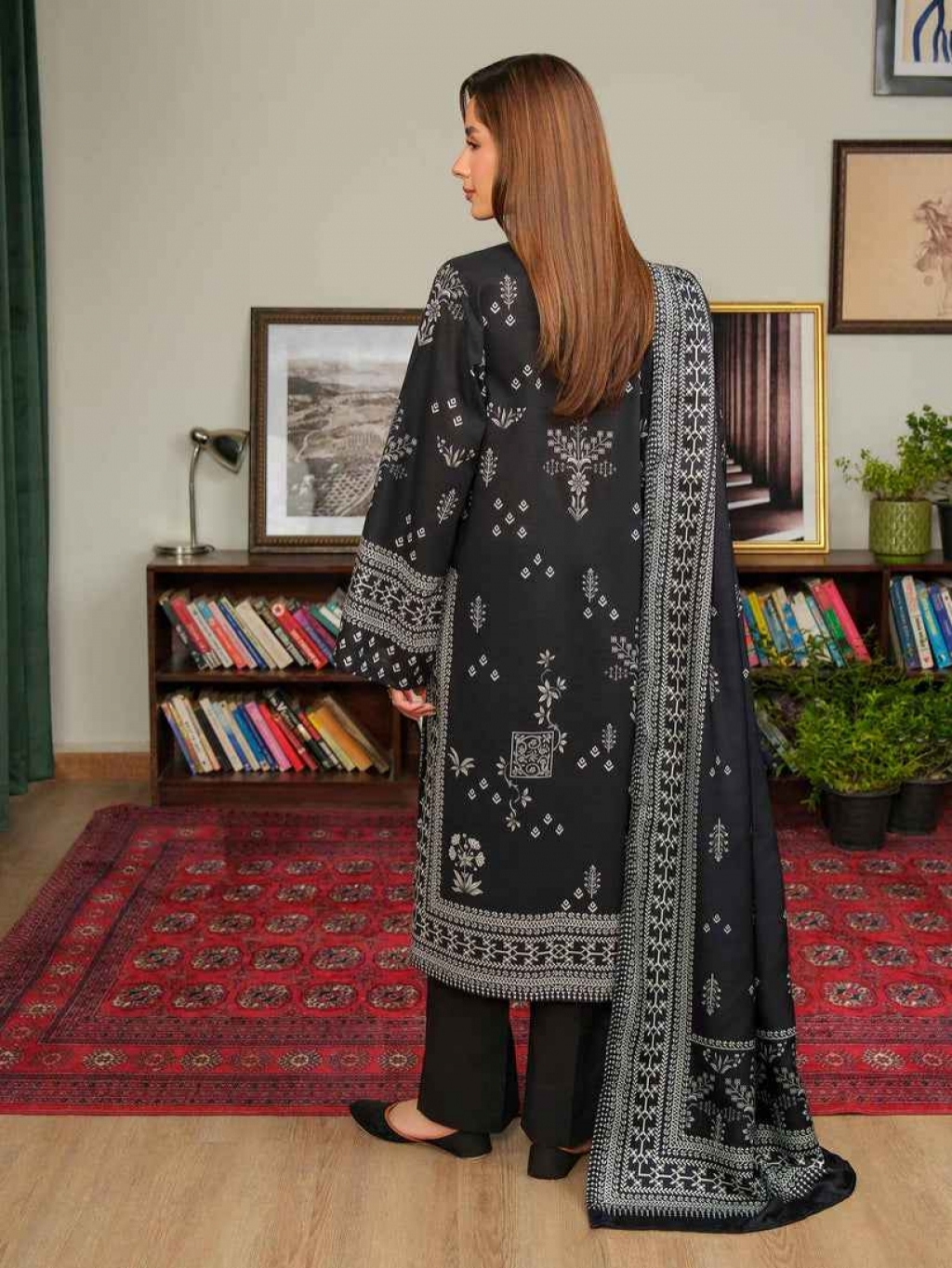 Shirt Printed shirt Fabric: Slub Khaddar Shawl Printed shawl Fabric: Poly Wool Color: Black