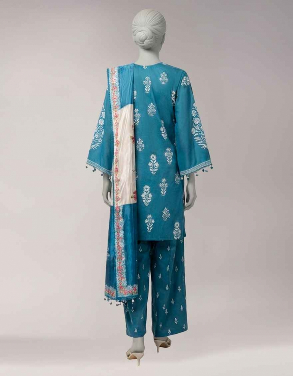 BLUE LAWN PASTE PRINTED UNSTITCHED 3 PIECE SUIT BY JUNAID JAMSHED