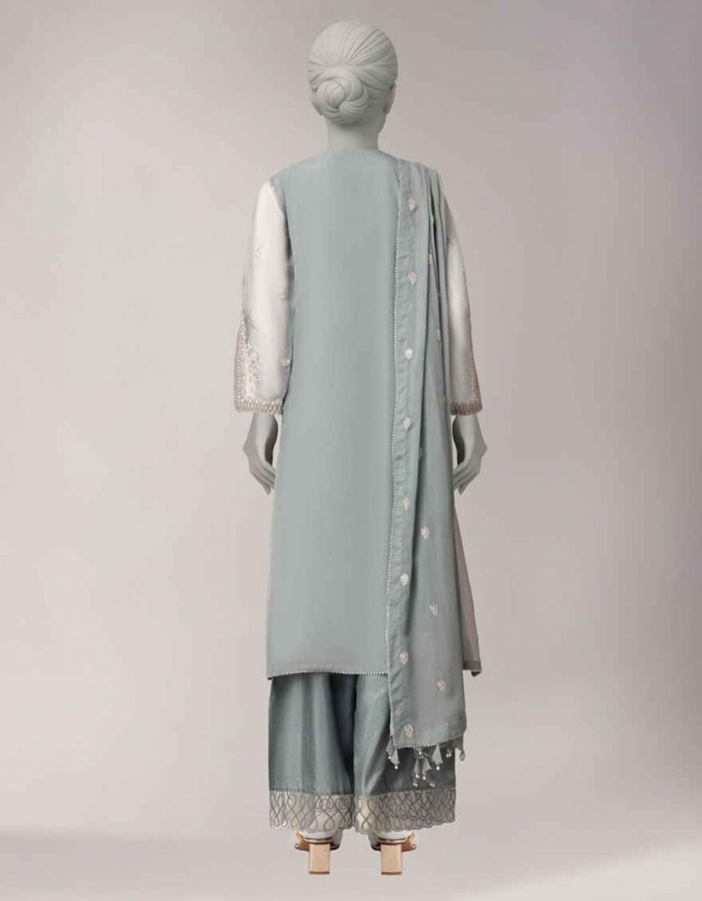 LUXE | Embroidered 3 Piece Embroidered Organza Shirt: 3.25 Meters Crepe Silk Lining: 2.5 Meters Embroidered Chiffon Dupatta: 2.5 Meters Raw Silk Trouser: 2.5 Meters