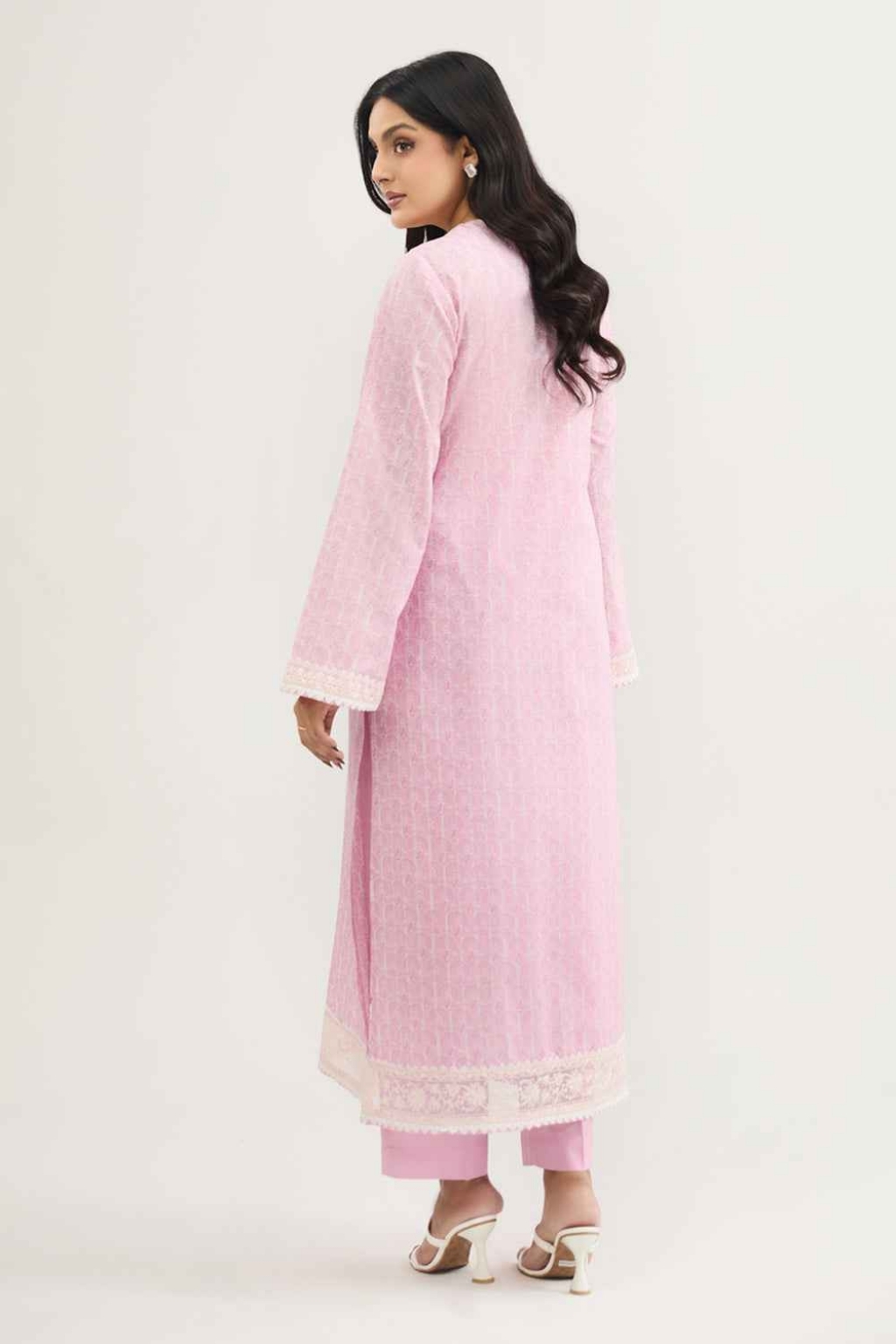 Eid collection 2026 sale 2-Piece Unstitched Shirt Printed Wider Width Lawn Shirt 2.5 M Dyed & Embroidered Neckline 1PC Dyed & Embroidered Organza Small Lace 1 M Dyed & Embroidered Organza Large Lace 1.5 M Fabric: Lawn Color: Pink Trouser Dyed Cambric Trouser 2.5 M Fabric: Cambric Color: Pink