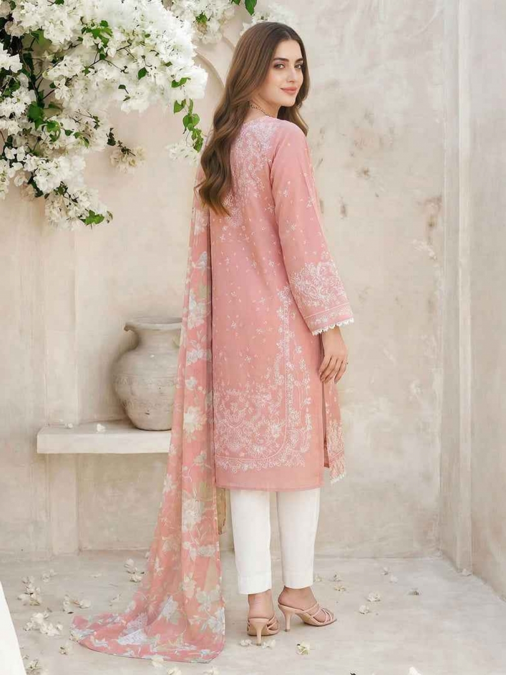 Shirt Paste Printed- 1.88m Fabric: Lawn Dupatta Printed- 2.5m Fabric: Monar Slub Color: Pink