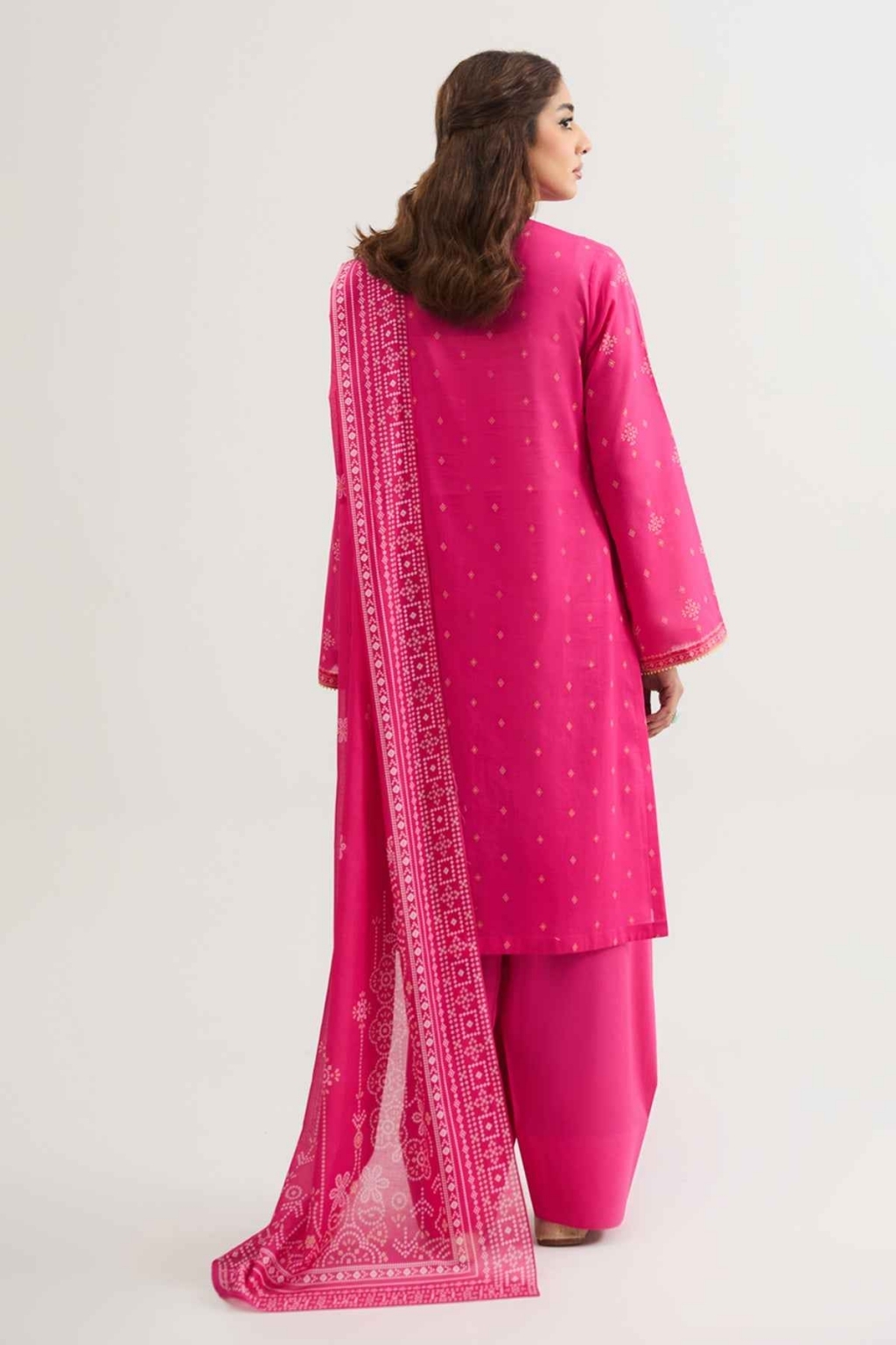 Eid collection 2026 sale 3-Piece Unstitched Shirt Printed Wider Width Lawn Shirt 1.8 M Fabric: Lawn Color: Pink Dupatta Printed Lawn Dupatta 2.5 M Fabric: Lawn Color: Pink Trouser Dyed Cambric Trouser 1.7 M Fabric: Cambric Color: Pink