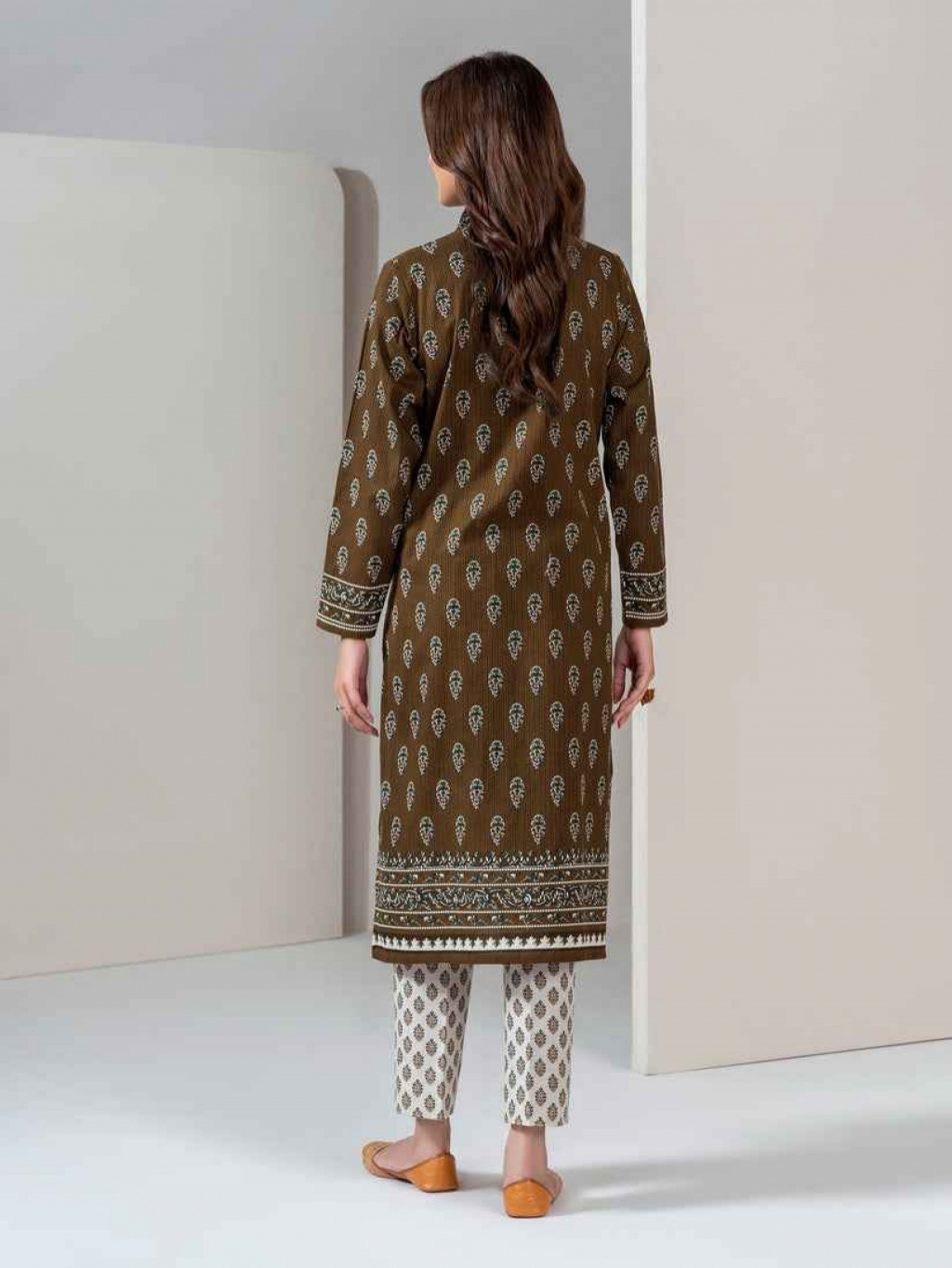 Shirt Printed- 1.83m Fabric: Khaddar Bottom Printed- 1.8m Fabric: Khaddar Color: Brown