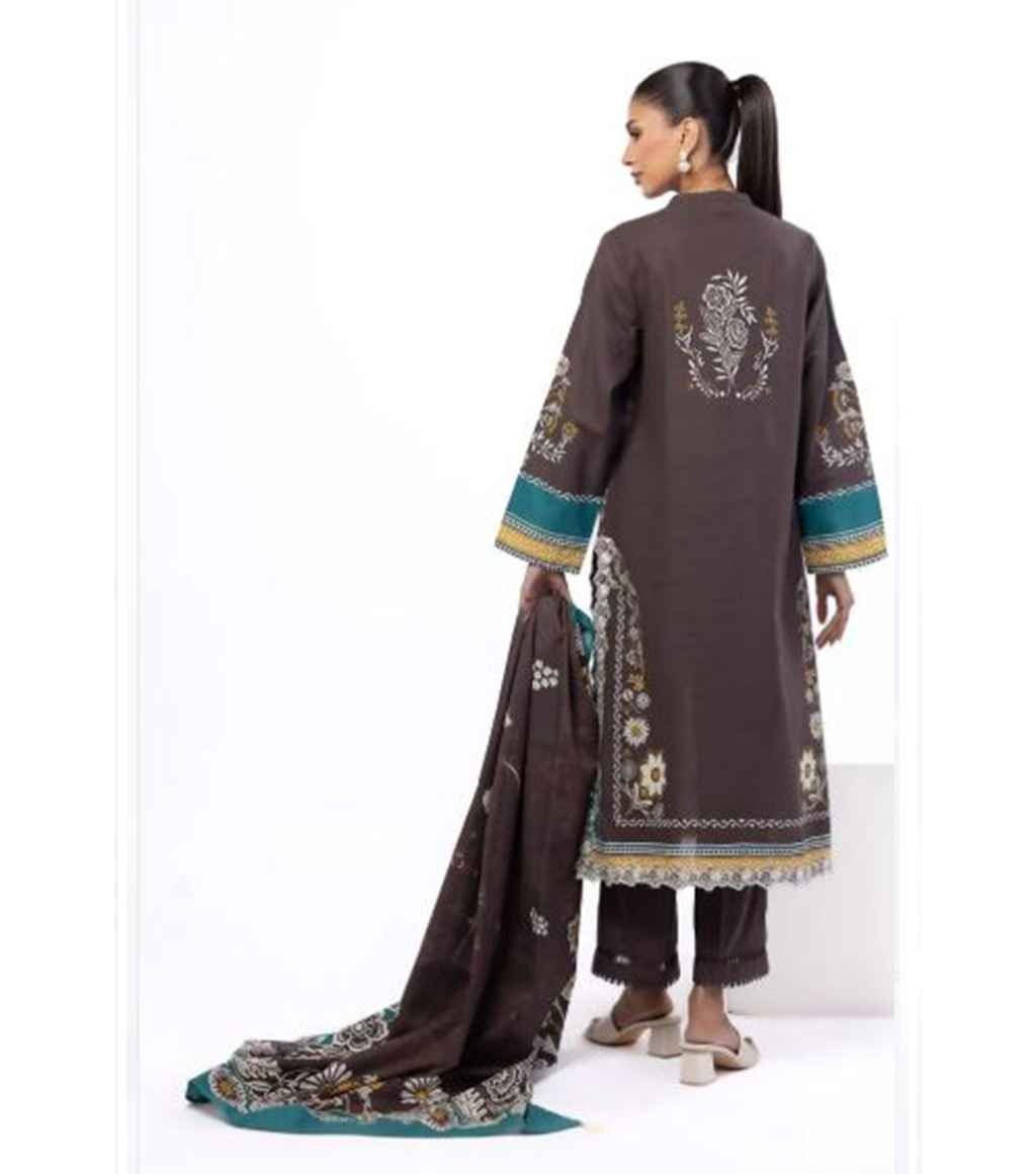 Brown Unstiched 3 Piece Dyed Embroidered Khaddar 3pc Suit by Khaadi