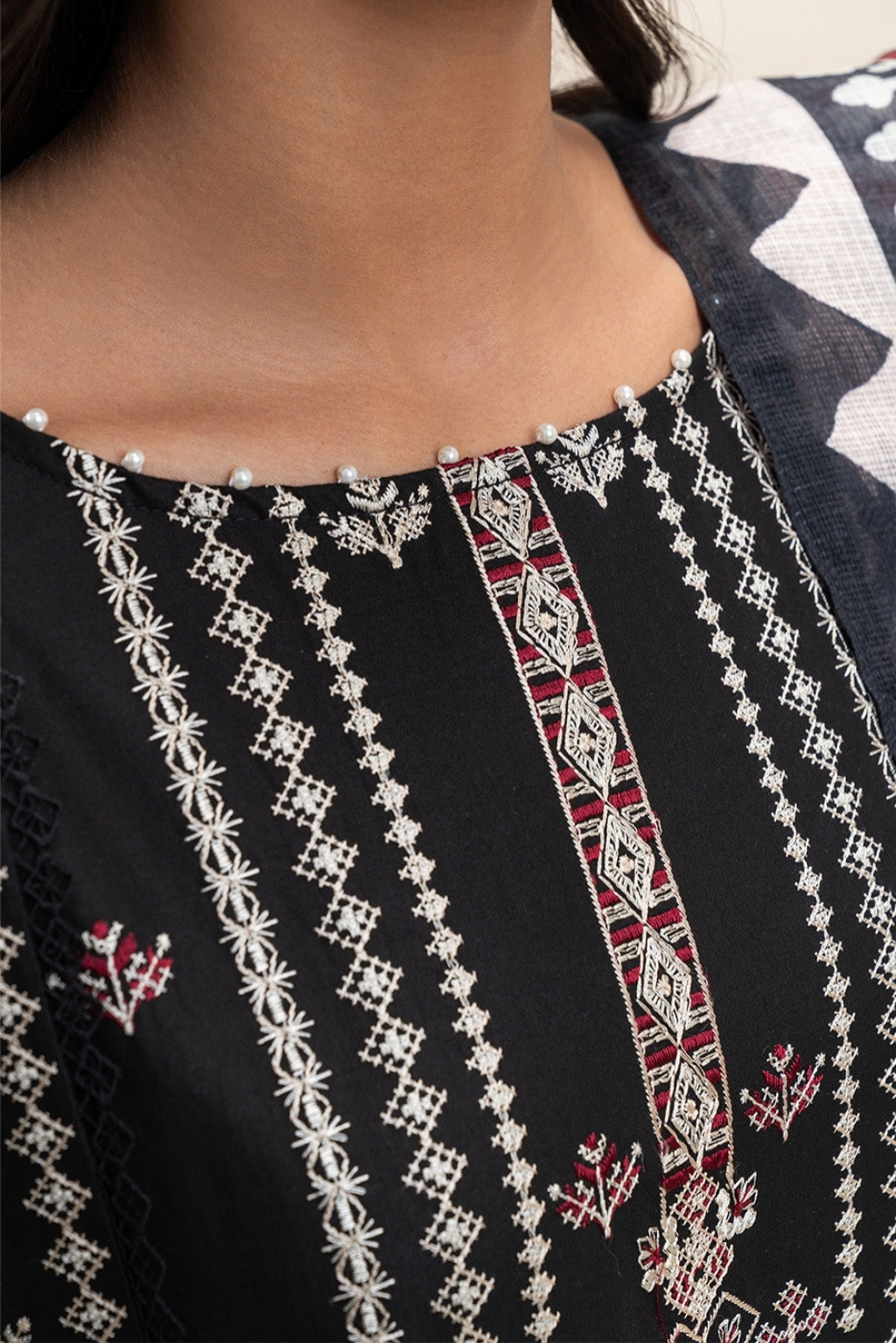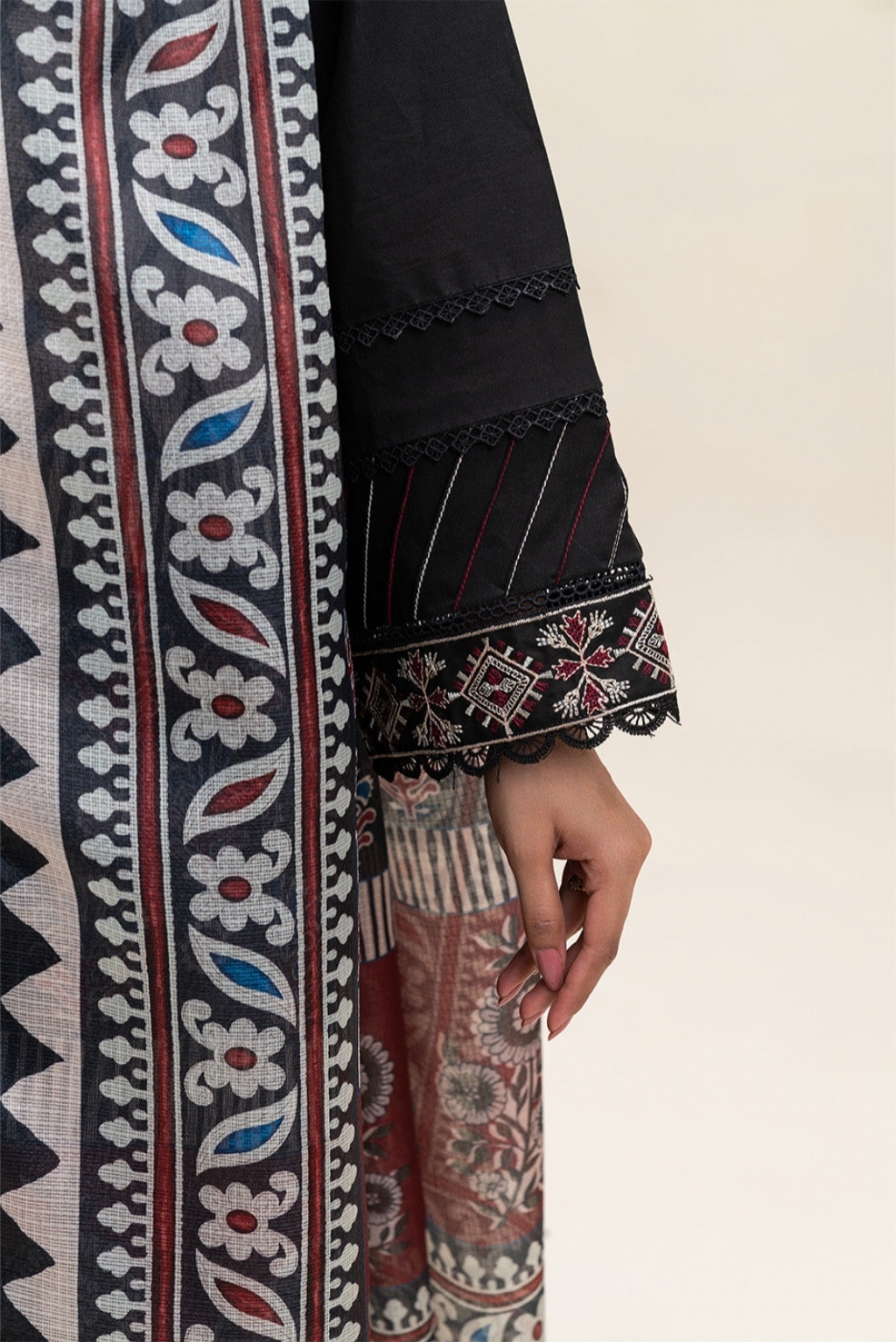 1.2 Mtrs Embroidered Lawn Front, 0.76 Mtrs Embroidered Front Border, 0.76 Mtrs Embroidered Sleeves Border, 0.5 Mtrs Lawn Sleeves, 1.2 Mtrs Lawn Back, 2.5 Mtrs Digital Printed Zari Net Dupatta , 1.8 Mtrs Dyed Pants