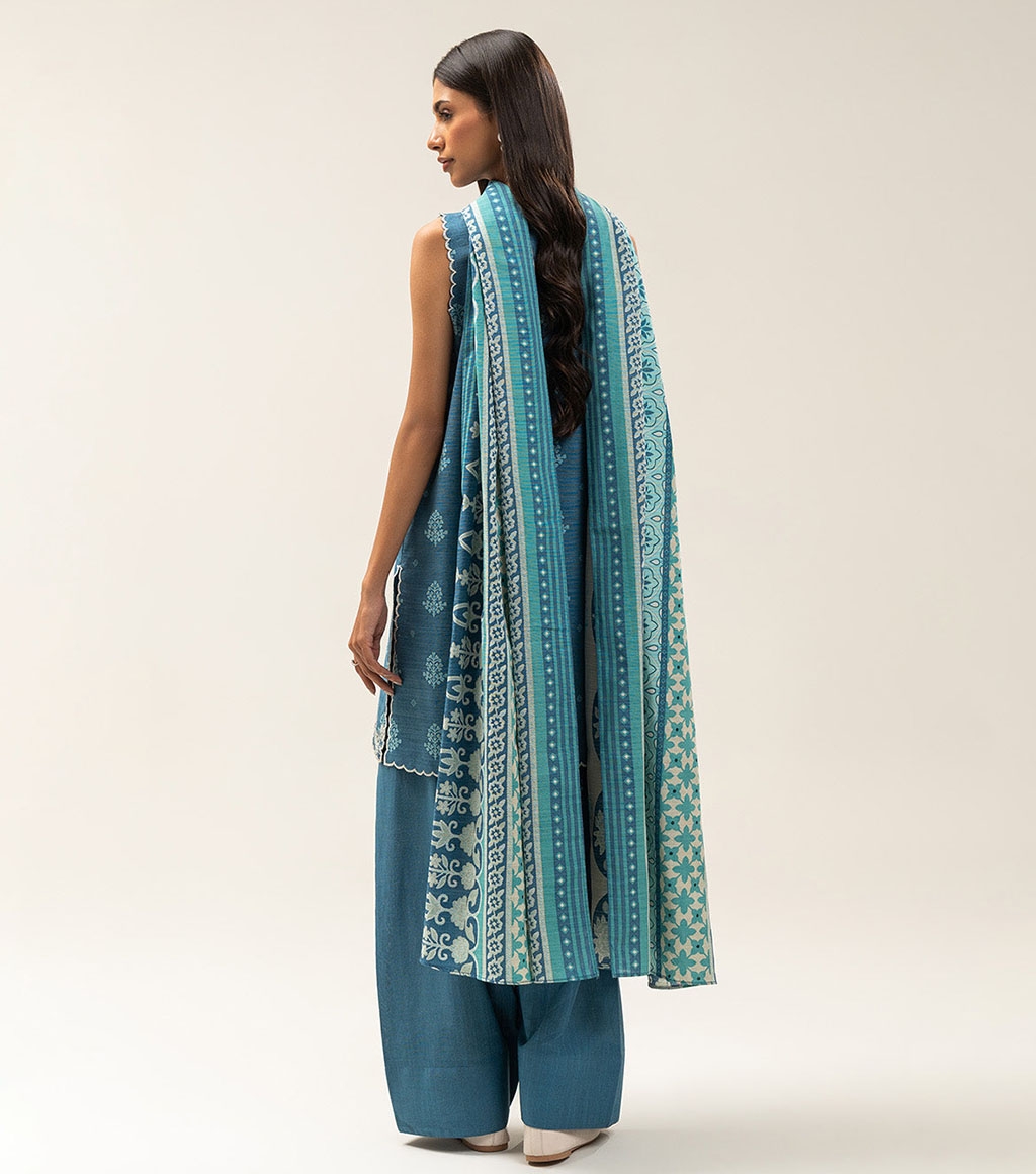 2.9 Mtrs Digital Printed Light-Khaddar Shirt, Embroidered Neckline On Tissue 1 Pc, Embroidered Front Border On Tissue 1 Pc, 2.5 Mtrs Digital Printed Light-Khaddar Dupatta, 1.8 Mtrs Dyed Pants