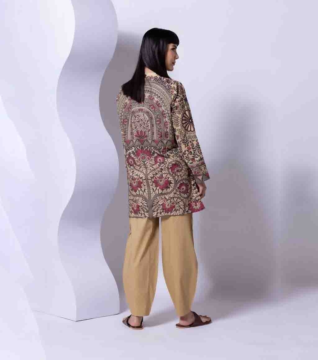 Kurta Fit: Regular Fabric Composition: 50% Viscose | 50% Cotton Material: Cotton Viscose Description: A short floral printed kurta featuring a band collar with a V-cut.