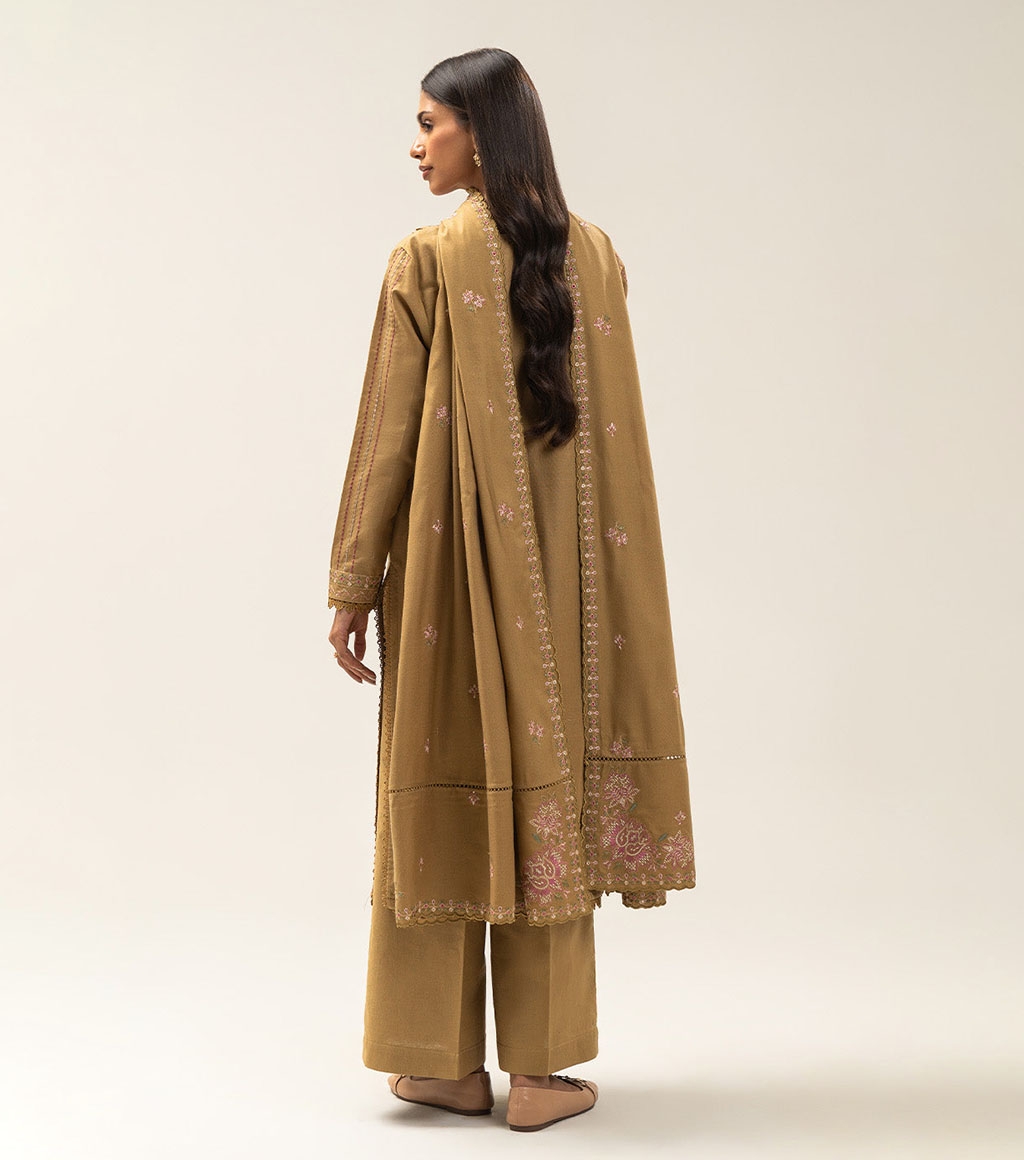 1.2 Mtrs Embroidered Light-Khaddar Front, , 0.76 Mtrs Embroidered Front Border, 0.76 Mtrs Embroidered Sleeves Border, 0.5 Mtrs Light-Khaddar Sleeves, 1.2 Mtrs Light-Khaddar Back , 1.98 Mtrs Embroidered Shawl (2X5 Embroidered Shawl Border), 1.8 Mtrs Dyed Pants