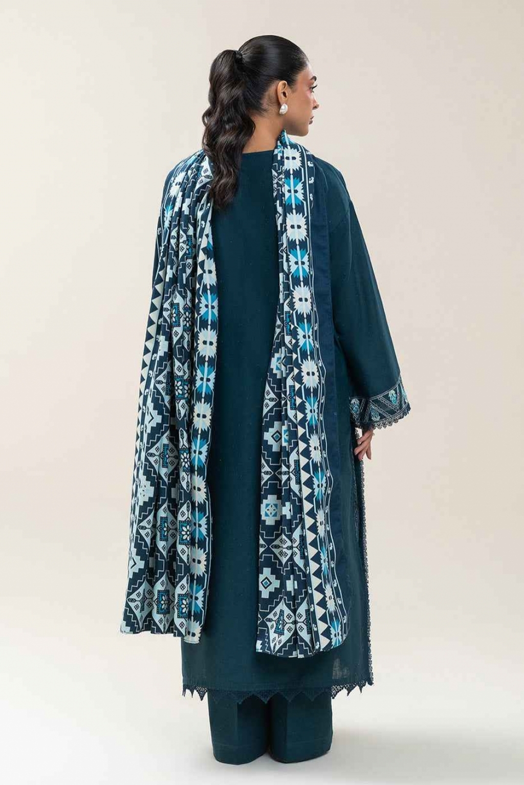 1.2 Mtrs Embroidered Light-Khaddar Front, 0.76 Mtrs Embroidered Sleeves Border, 0.5 Mtrs Light-Khaddar Sleeves, 1.2 Mtrs Light-Khaddar Back, 2.5 Mtrs Jacquarad Shawl, 1.8 Mtrs Dyed Pants