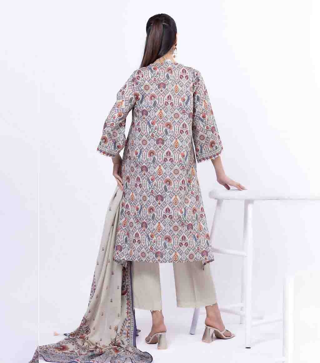 Top Fabric: Digital Printed Lawn | 3m Bottom Fabric: Dyed Cambric | 2.5m Dupatta Fabric: Digital Printed Lawn | 2.5m Material: Lawn