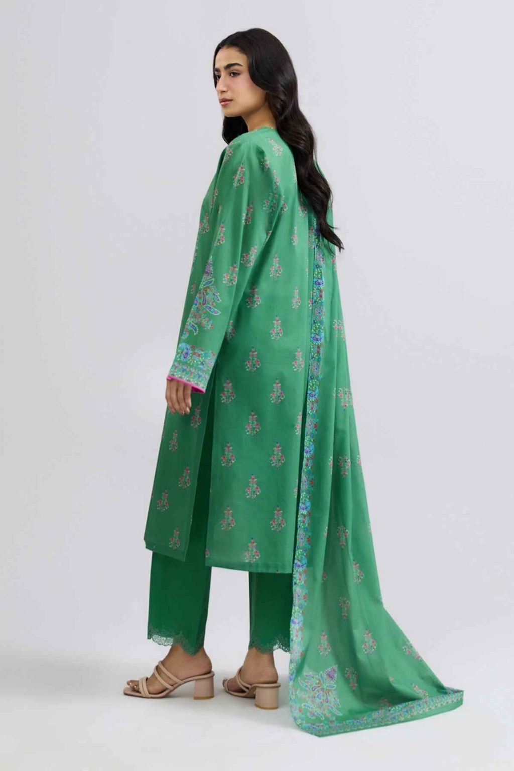 Eid collection 2026 sale 3-Piece Unstitched Shirt Printed Wider Width Lawn Shirt 1.8 M Dyed & Embroidered Organza Lace 1 M Fabric: Lawn Color: Green Dupatta Printed Lawn Dupatta 2.5 M Fabric: Lawn Color: Green Trouser Printed Cambric Trouser 1.7 M Fabric: Cambric Color: Green