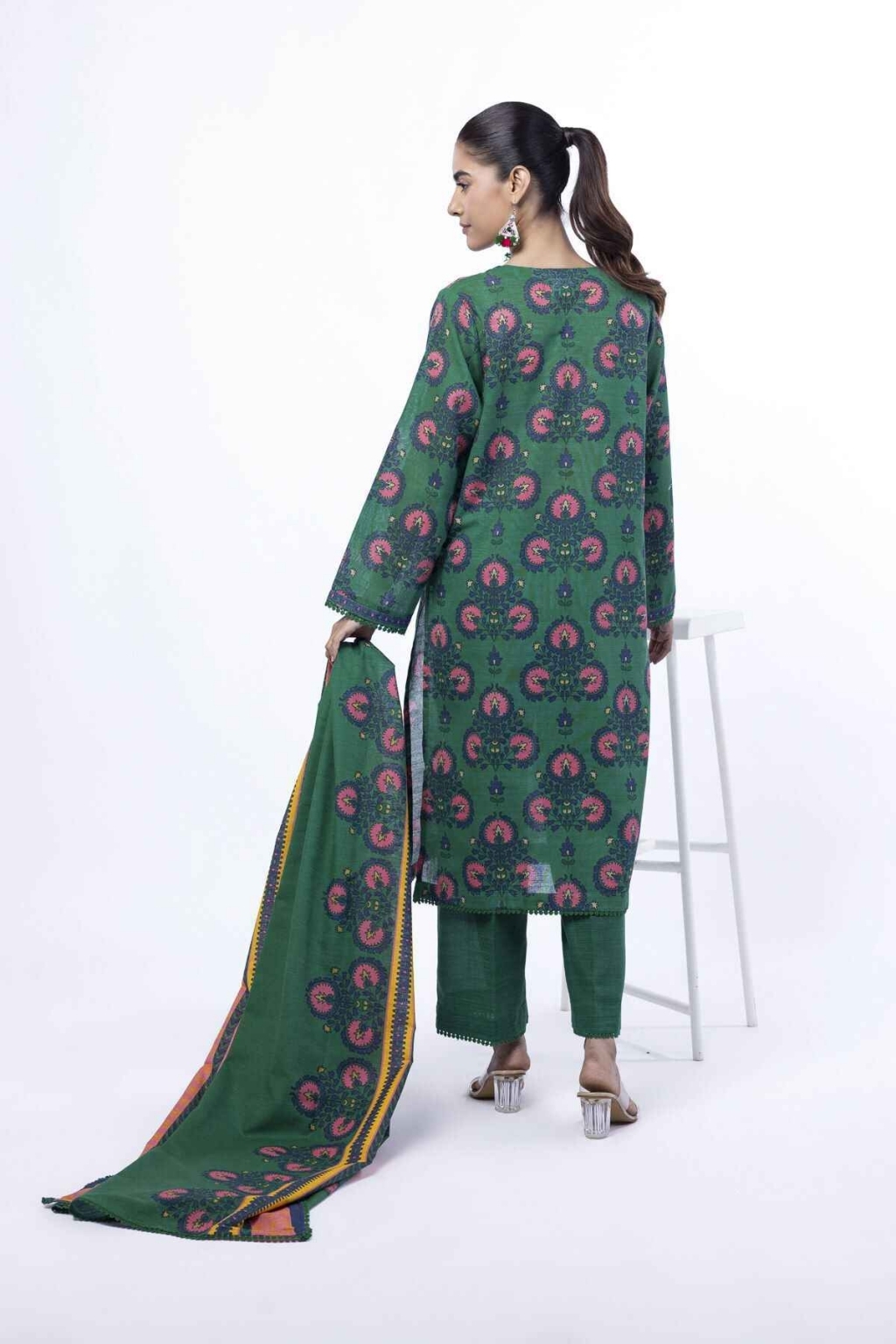 Fabrics 3 Piece Top Fabric: Printed Light Khaddar | 3m Bottom Fabric: Dyed Khaddar | 2.5m Dupatta Fabric: Printed Light Khaddar | 2.5m Material: Light Khaddar