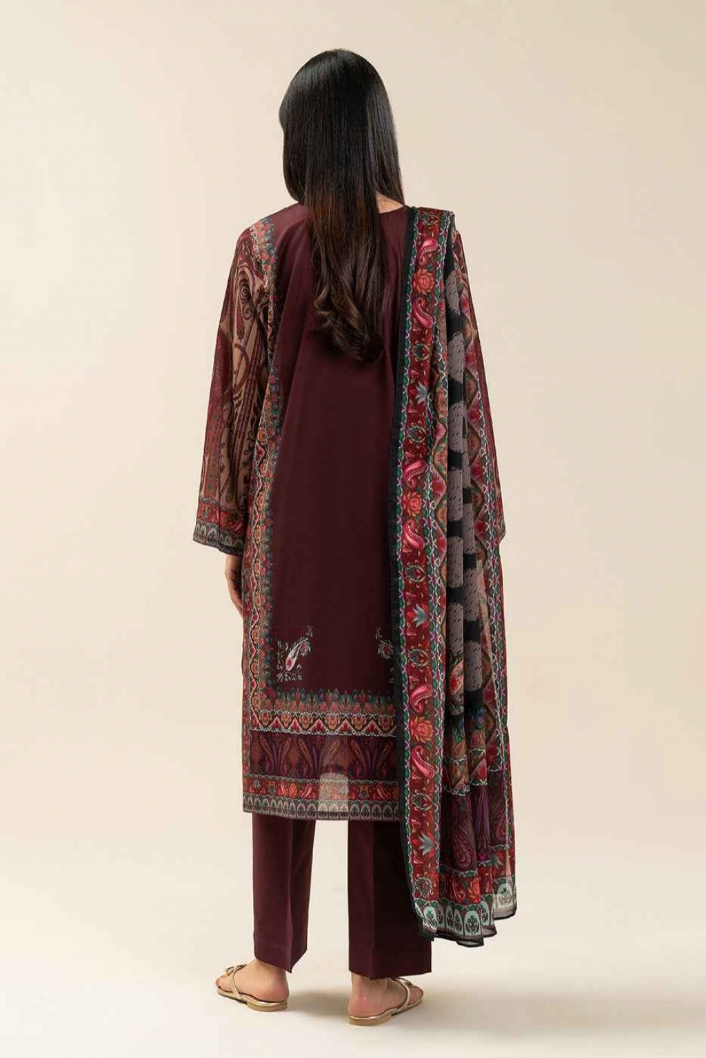 2.9 Mtrs Printed Lawn Shirt, Embroidered Neckline On Tissue 1 Pc, 2.5 Mtrs Printed Lawn Dupatta, 2.5 Mtrs Dyed Pants