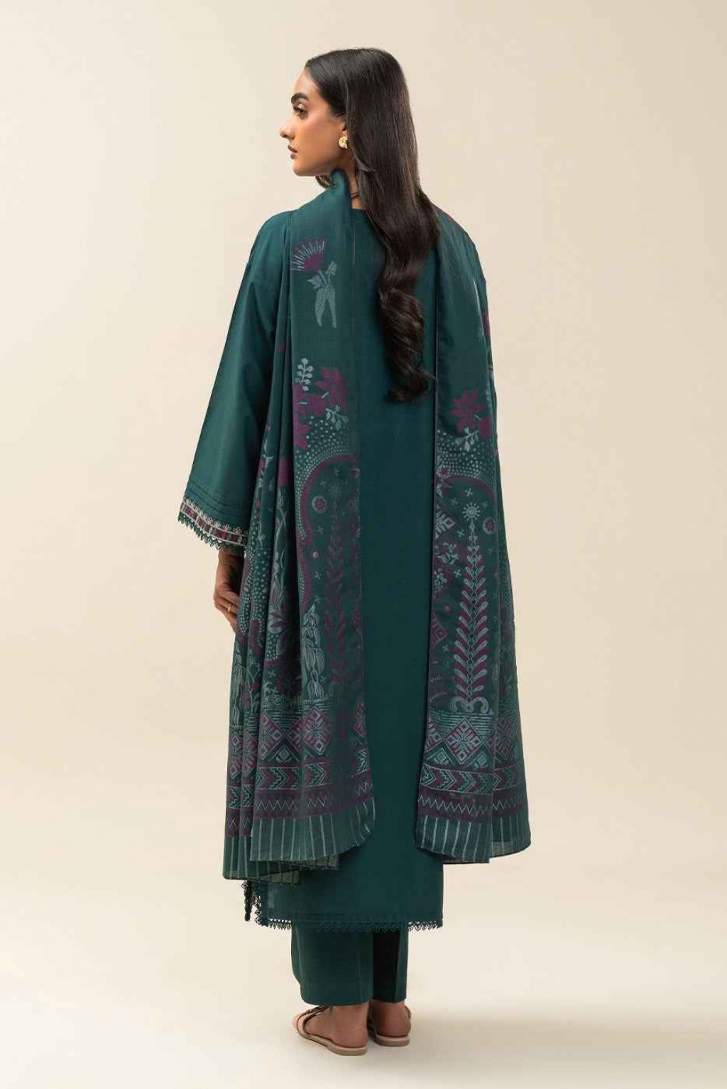1.2 Mtrs Embroidered Lawn Front, 0.76 Mtrs Embroidered Sleeves Border, 0.5 Mtrs Lawn Sleeves, 1.2 Mtrs Lawn Back, 2.5 Mtrs Jacquard Dupatta, 1.8 Mtrs Dyed Pants