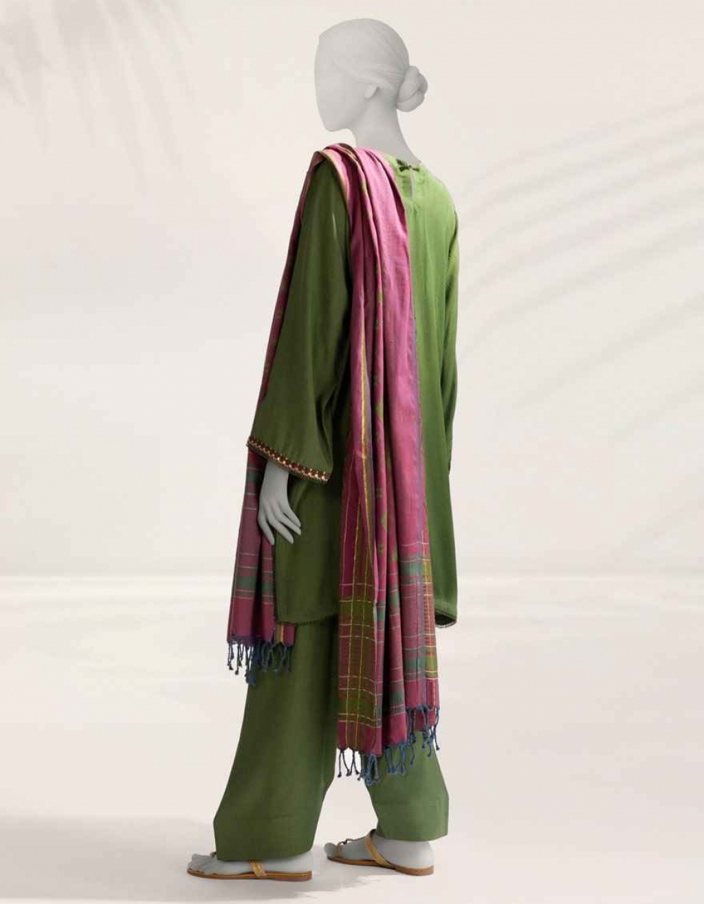 Embroidered 3 Piece Embroidered & Dyed Linen Shirt: 3.05 Meters Jacquard Dupatta: 2.5 Meters Dyed Linen Trouser: 2.5 Meters