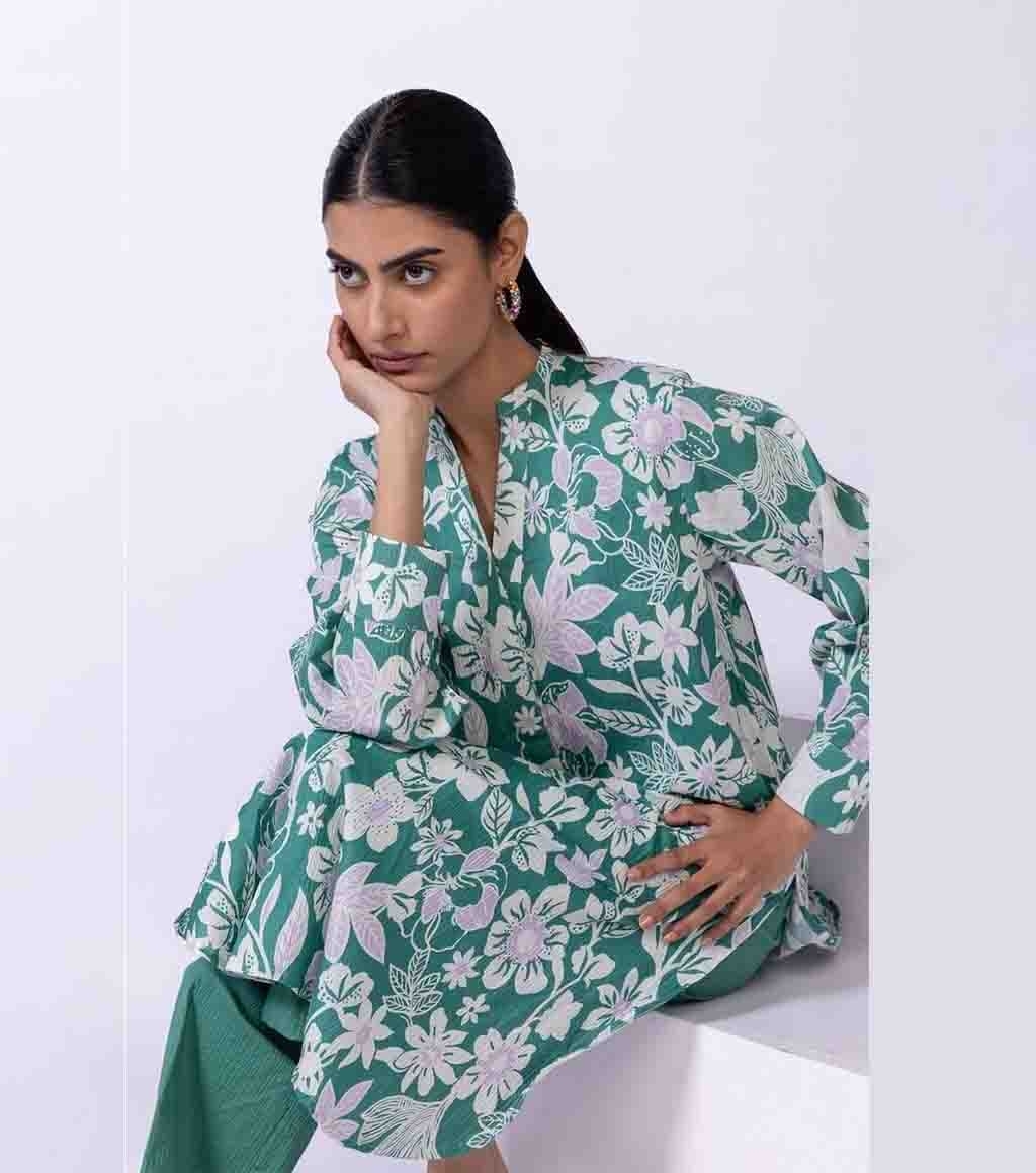 Kurta Fit: Smart Fabric Composition: 97% Cotton | 3% Elastane Material: Ripple Crinkle Description: A long floral printed kurta featuring full sleeves and a band collar with buttons.