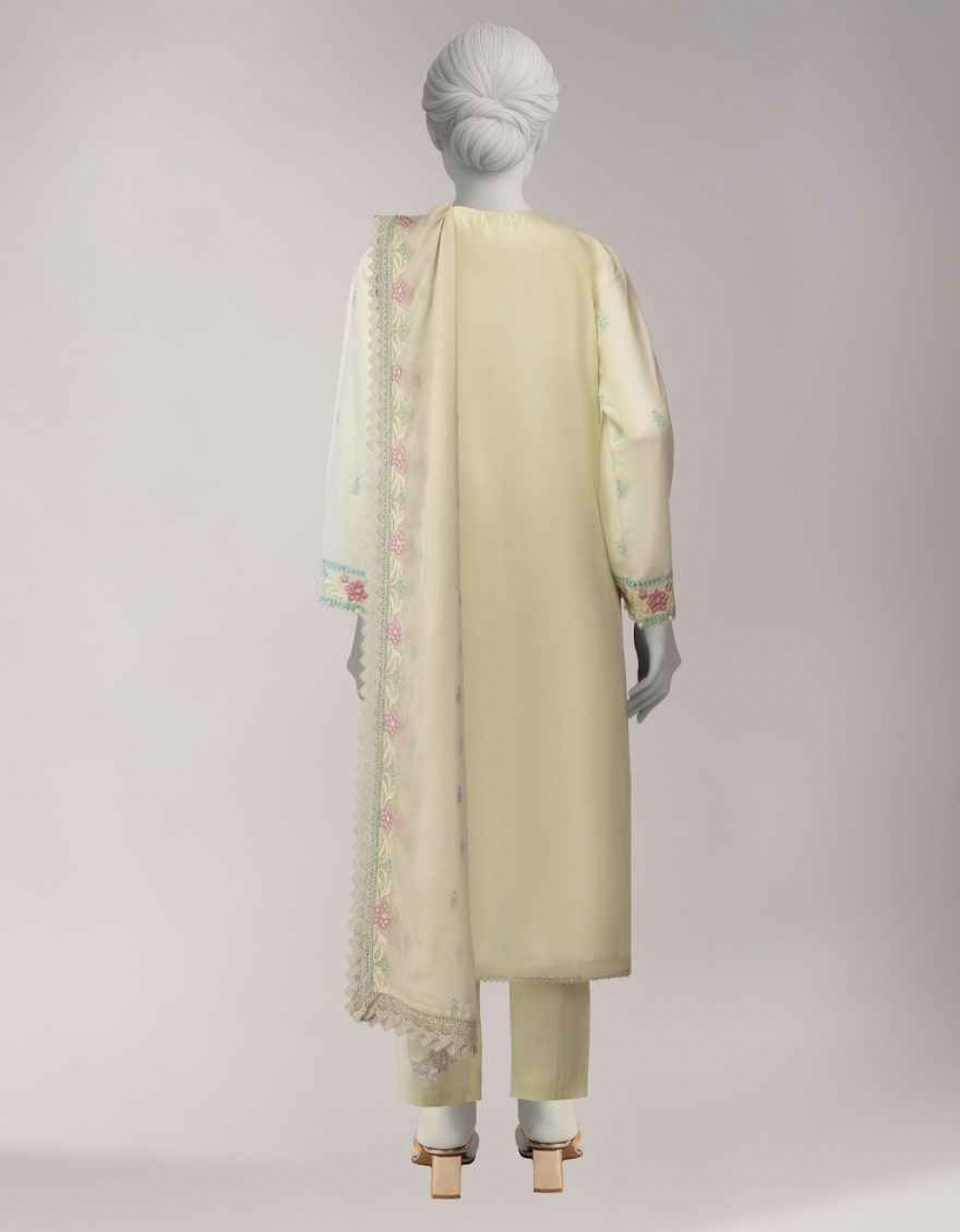 ZARIYA | Embroidered 3 Piece Embroidered Lawn Shirt: 3 Meters Embroidered Chiffon Dupatta: 2.5 Meters Dyed Lawn Trouser: 2.5 Meters