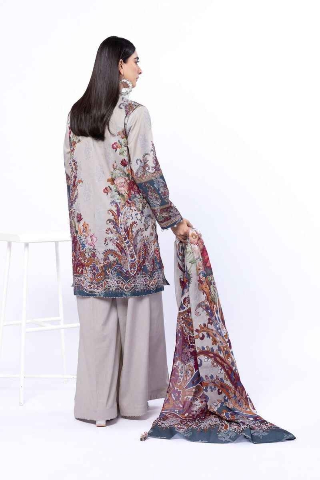 Style Collection: Greige with Multicolor printed unstitched 3 piece dyed Printed | Jacquard 3pc suit by khaadi